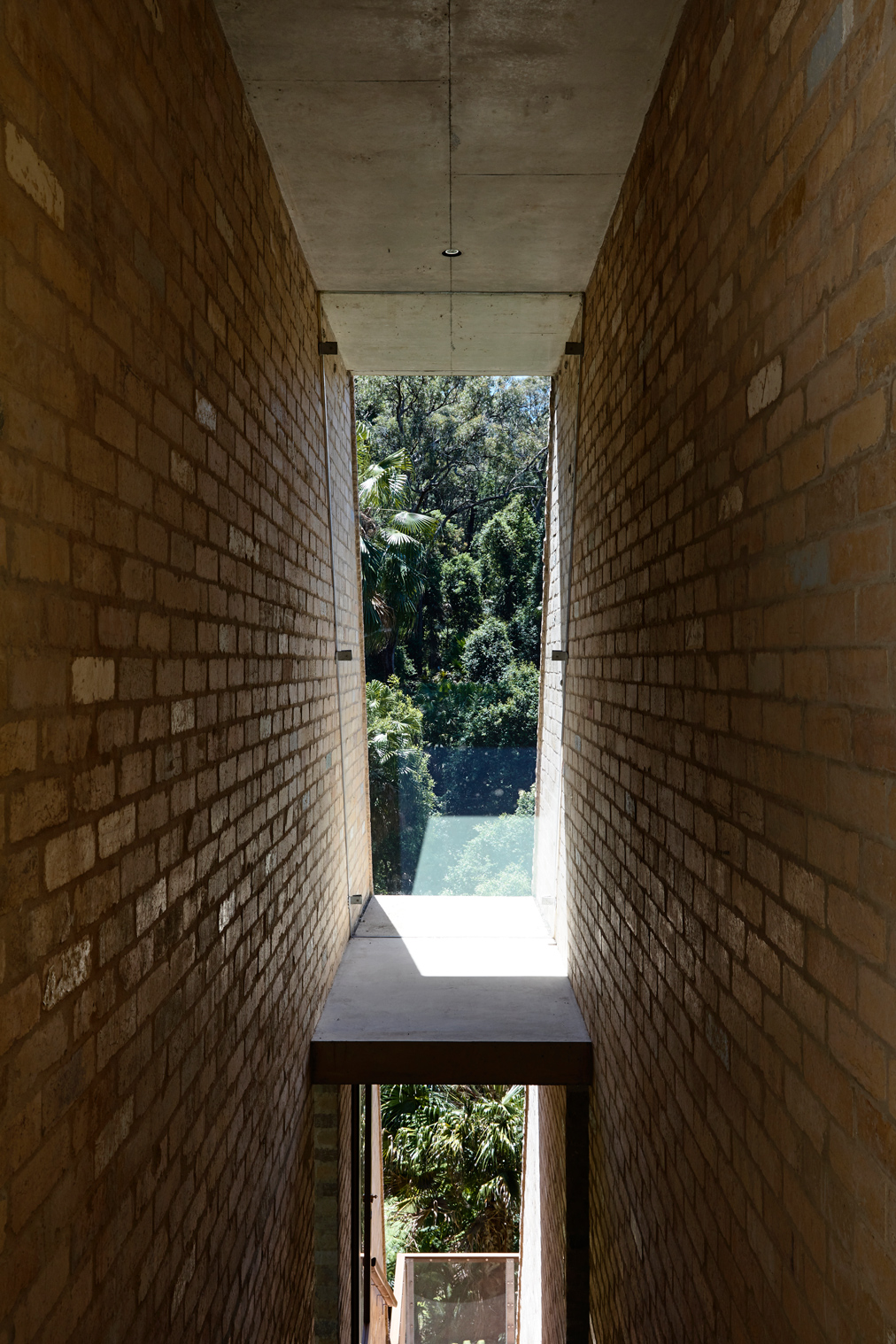 With the extruded masonry structure acting as an extension of the hillside, Cabbage Tree House engages fundamentally with the land of which it is now a part. And through the fusion of the built form and the earth, the building becomes a connecting force between the land and its inhabitants. Peter describes the building as a “sky ground connection”. One approaches the building from the elevated plateau at the top of the hill, and then descends down the hillside through the house, with the building acting as a conduit within the landscape.
