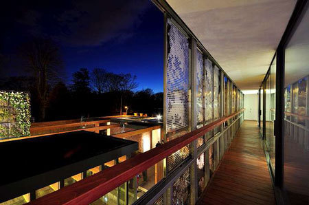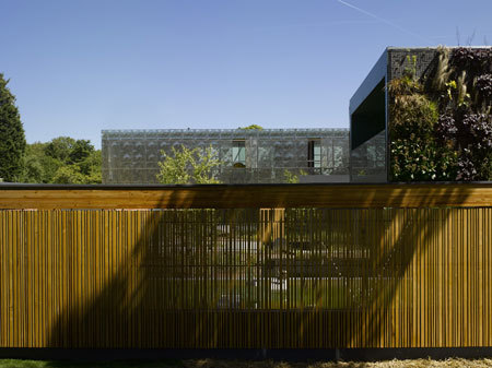 The ground floor volumes all have green roofs with hydroponic vertical gardens cladding the living room. The energy for the heating, and hot water, is provided by geothermal boreholes. Heat exchangers utilise the constant temperature from the ground to provide all the energy required. Coupled with the high levels of insulation throughout the house this system has virtually no running cost dramatically reducing the carbon footprint and making this a truly sustainable house.