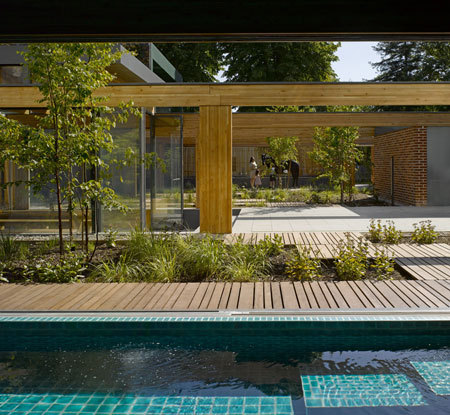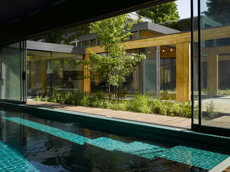 These two main wings of the house are linked by the indoor swimming pool connecting them along the northern boundary, which has a series of large sliding doors opening the pool onto the courtyard.