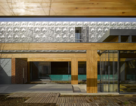 The design seeks to create a contemporary courtyard home, the volumes are arranged on the site to exploit natural light throughout day, the plan sets up a central landscaped courtyard with a series of satellite courtyards spread around the site, to create a diverse range of connections to different external rooms, and views through and in between the building, into spaces beyond, through the glazing, the perforated steel and timber screens.