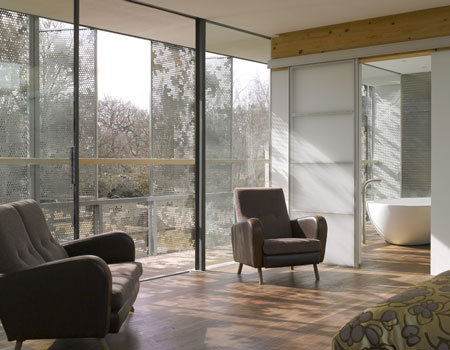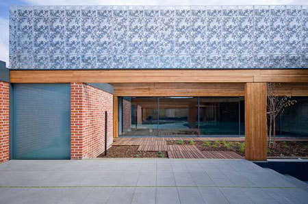 The house owner/developer worked with H2design to develop the interior design, the detail of the timber front screen and the final pattern of perforations to the stainless steel shutters.