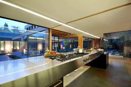 The bedroom suites are linked to the ground floor living spaces in the eastern wing by a cantilevered timber stair within a dramatic top lit double height space.