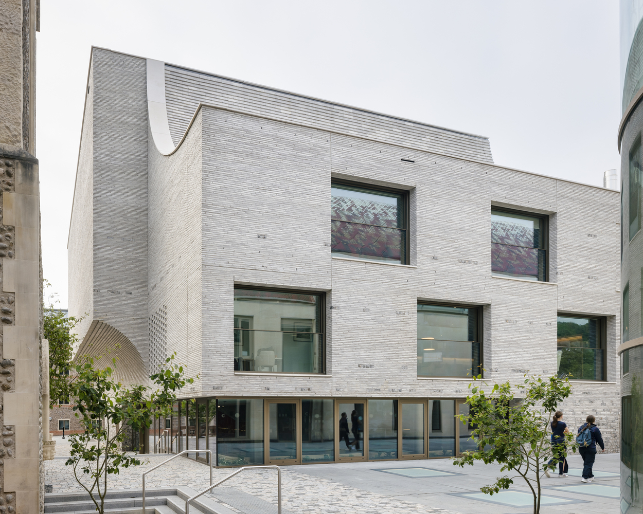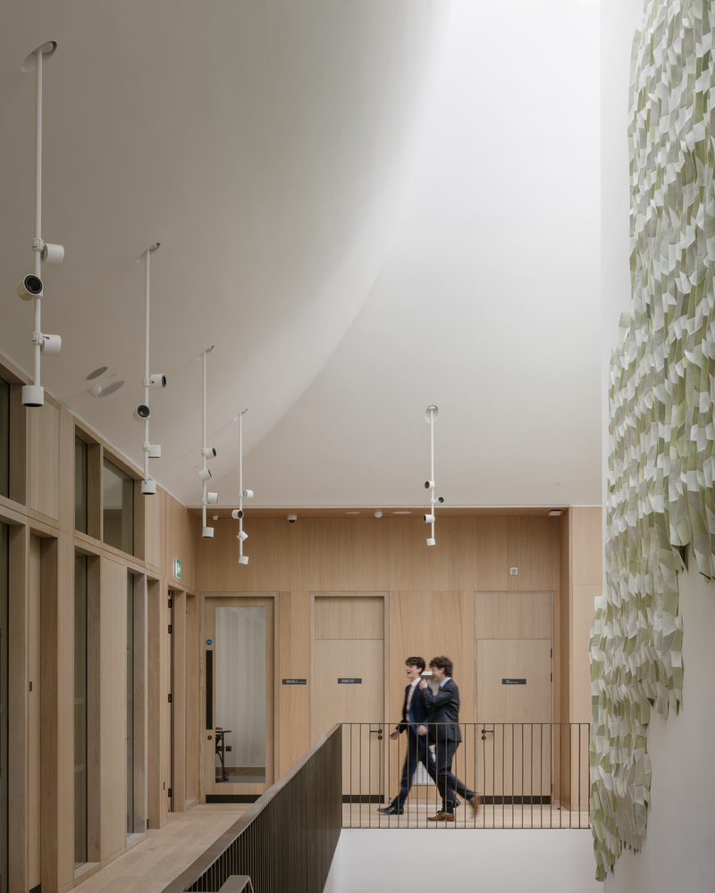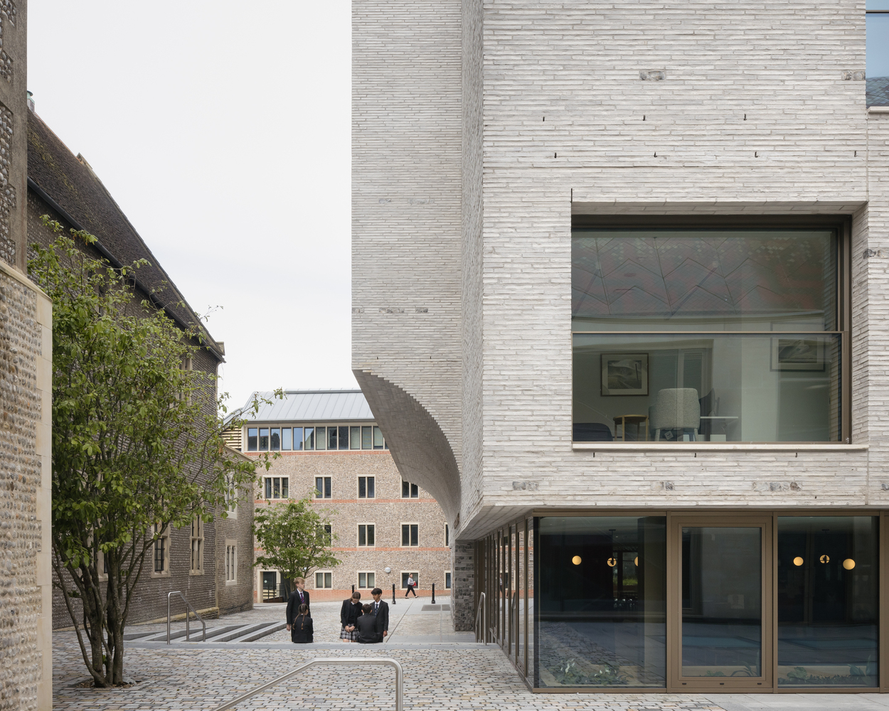 The size that was briefed by the College was quite large for the compact size, which is squeezed in between the listed Gilbert Scott designed Main Building and the newly built School for Sports and Science. By setting the building apart from the monumental buildings, new intimate outdoor spaces appear, but it also requires a very refined spatial puzzle to make it fit.