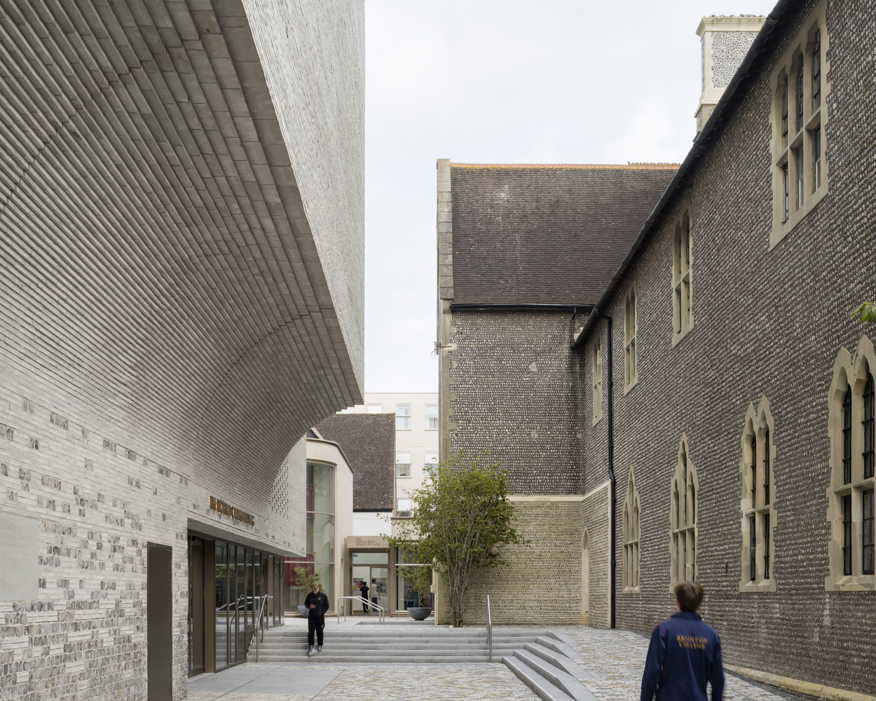기존의 역사적인 건물들과 분리하여 새로운 친밀한 야외 공간을 창출했습니다. 이 분리는 제한된 부지 내에서 광범위한 요구 사항을 수용하기 위한 혁신적인 공간 계획을 요구했습니다.