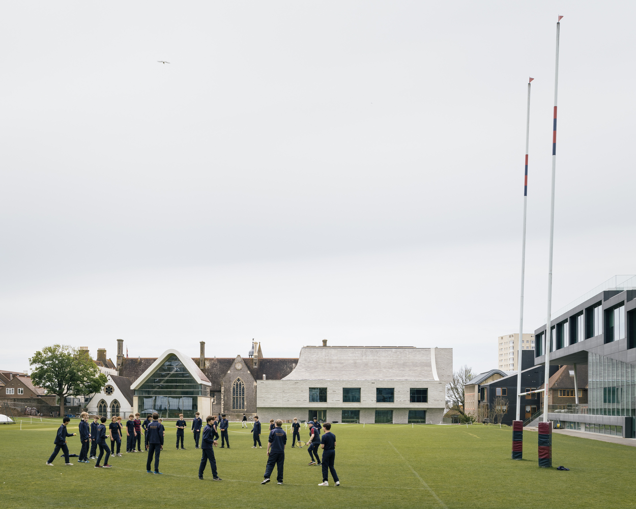 브라이튼 컬리지의 네오고딕 캠퍼스 내의 협소한 부지에 위치한 이 센터는 역사적인 길버트 스콧(Gilbert Scott) 설계의 메인 빌딩(Main Building)과 새로 지어진 스포츠 및 과학 학교(School for Sports and Science) 사이에 끼어 있습니다. 제한된 공간에 큰 규모의 요구 사항을 맞추는 것이 도전 과제였습니다.