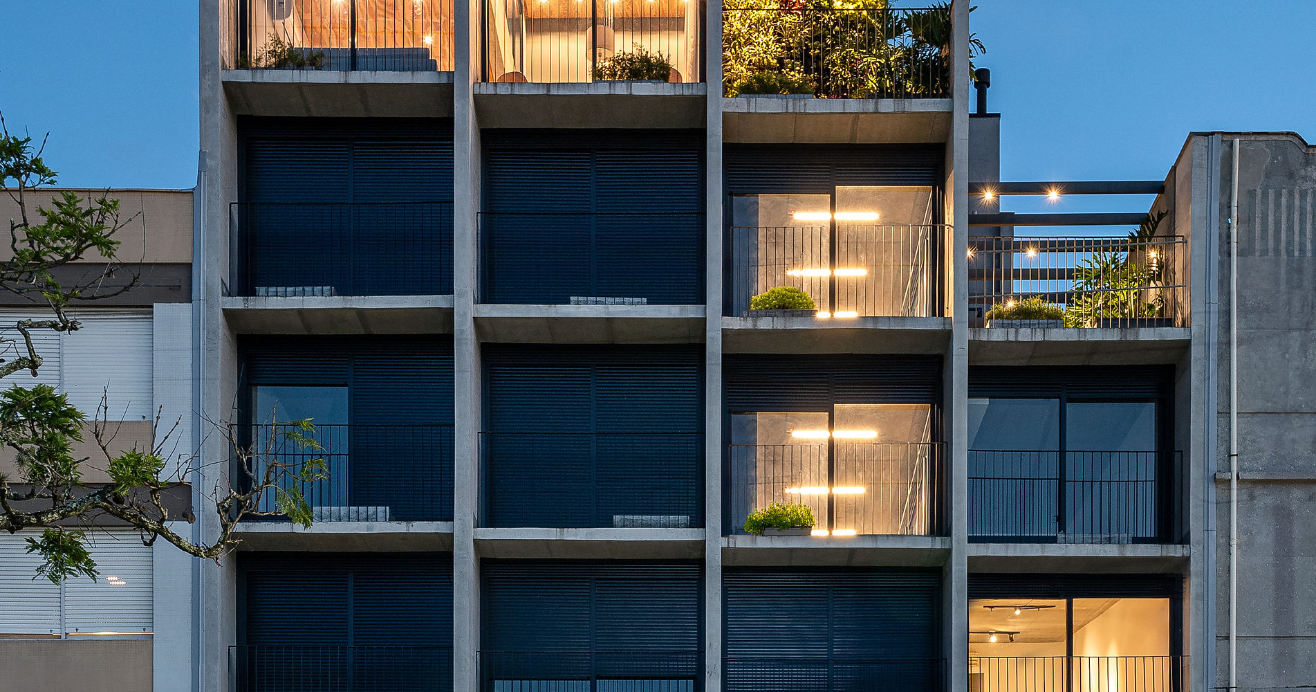 Os terraços criados a partir da edição da volumetria são destinados para as áreas condominiais do empreendimento, as quais ganham destaque tanto por suas visuais privilegiadas quanto por coroarem o projeto.