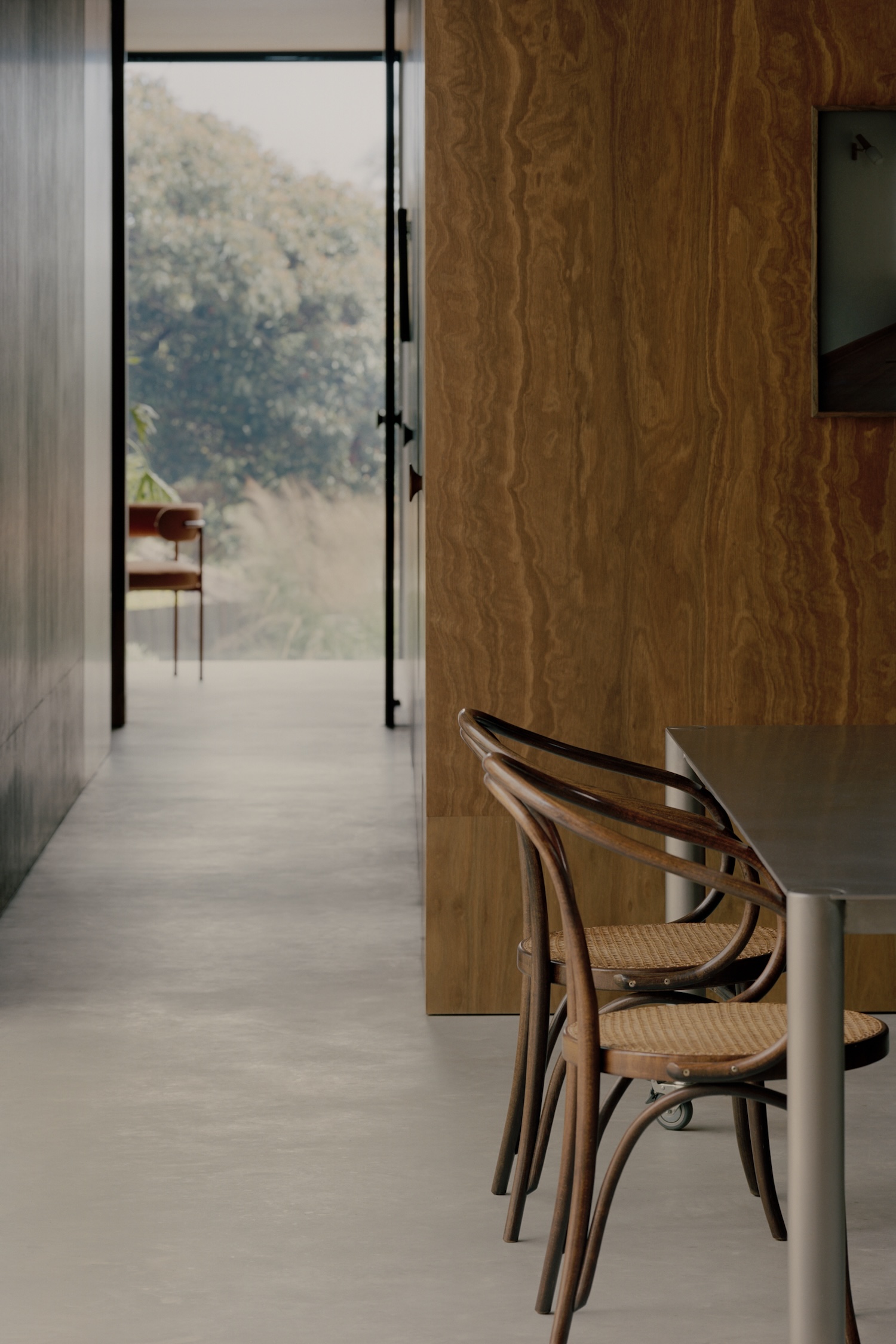 ### 폴리싱 콘크리트(polished concrete)와 스팟티드 검 플라이우드(durable spotted gum plywood)