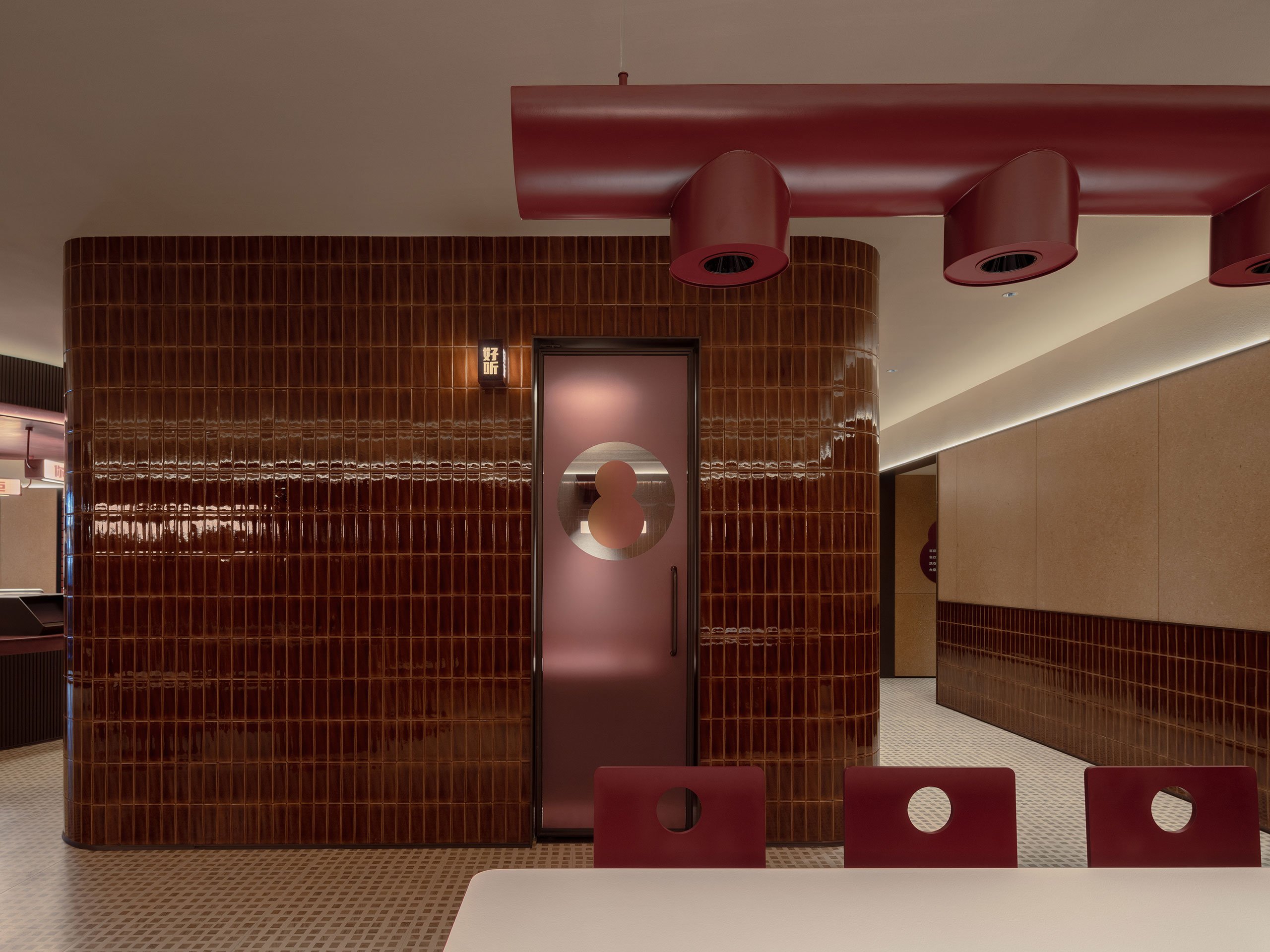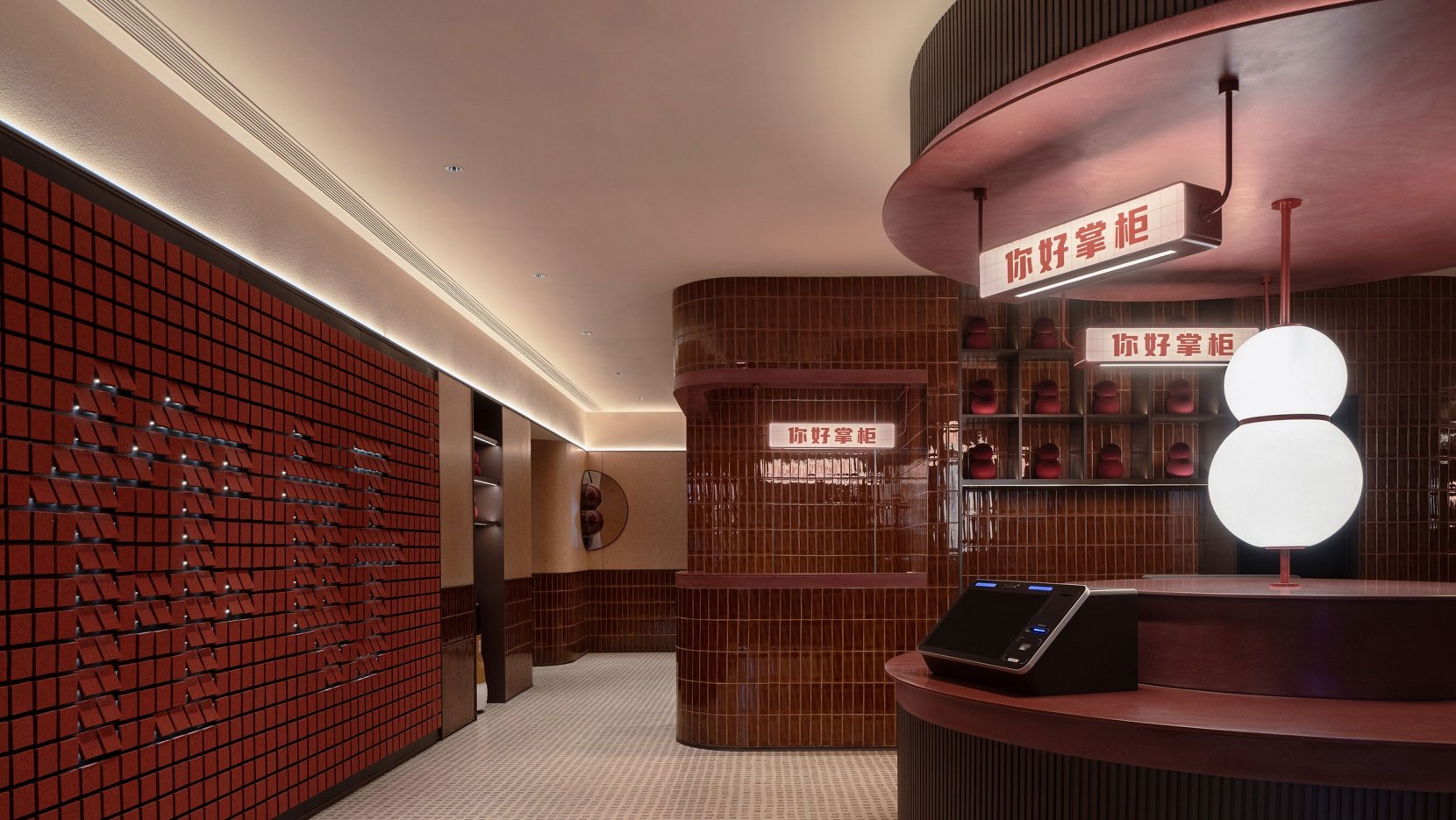 Named after the Chinese greeting for 'hello', the low budget Ni Hao Hotel in Chengdu, China, has been designed as a reflection of the spirit of friendliness, politeness and openness inherent in Chinese culture. Shanghai based interior design firm Vermilion Zhou Design Group combined a playful design language of round forms and glimmering red hues with symbolic motifs inspired by the shape of the calabash, which in China is a symbol of blessings, fortune and safety for travellers. Blending modernity and tradition, the whimsical aesthetic is complemented with a bold configuration that subverts the traditional reception and lobby typology: all public areas have been fused into a single, boldly styled, immersive space open to the street. The resulting vibe is more of a sleek, modern-day coffee shop or fast casual restaurant rather than that of a budget hotel chain, creating an inviting and memorable environment for all who enter.