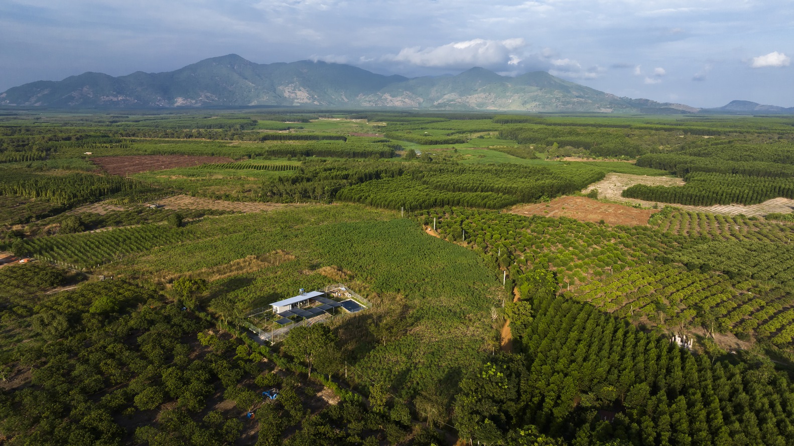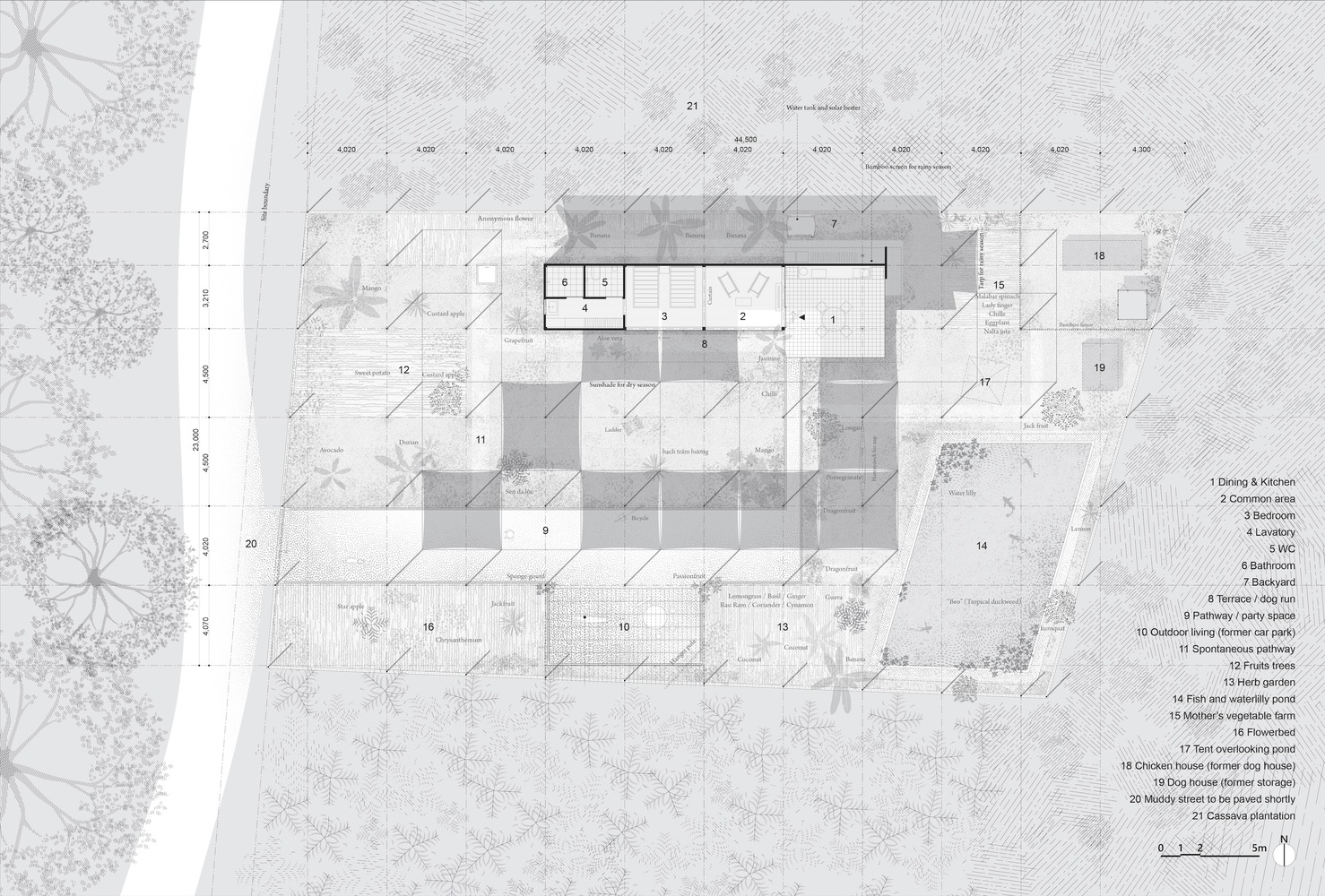 In the middle of nowhere, a tiny house stands on a vast 1.000 m2 of land surrounded by agricultural plantations that emerge from the suburban commune. Due to this isolated location, building a house within a budget of as little as 19.000 USD meant sourcing all the materials and techniques within the local network. On the contrary, this “outer fringe of suburb” is now considered the frontline of urbanization as the residential areas grow further outwards from the centers of major cities.
