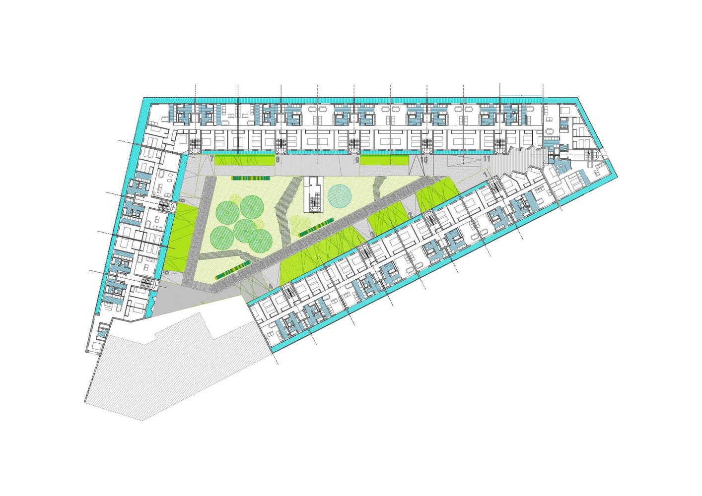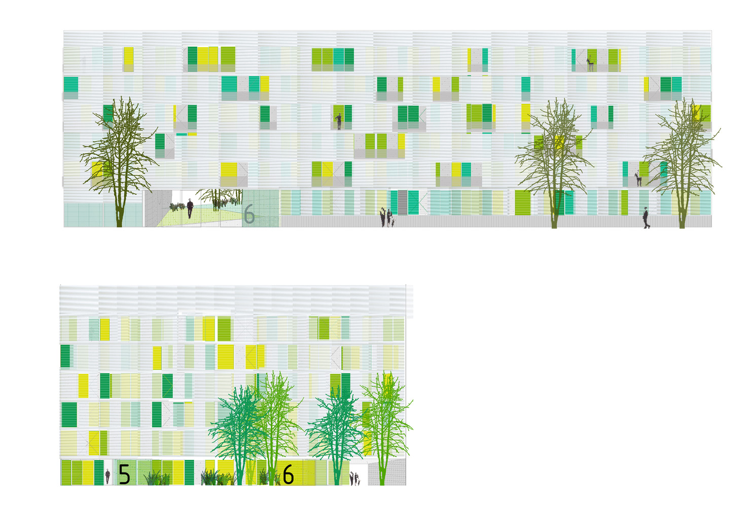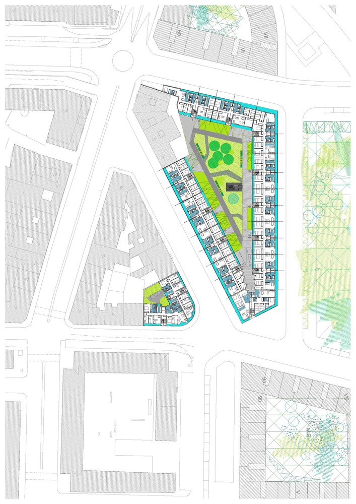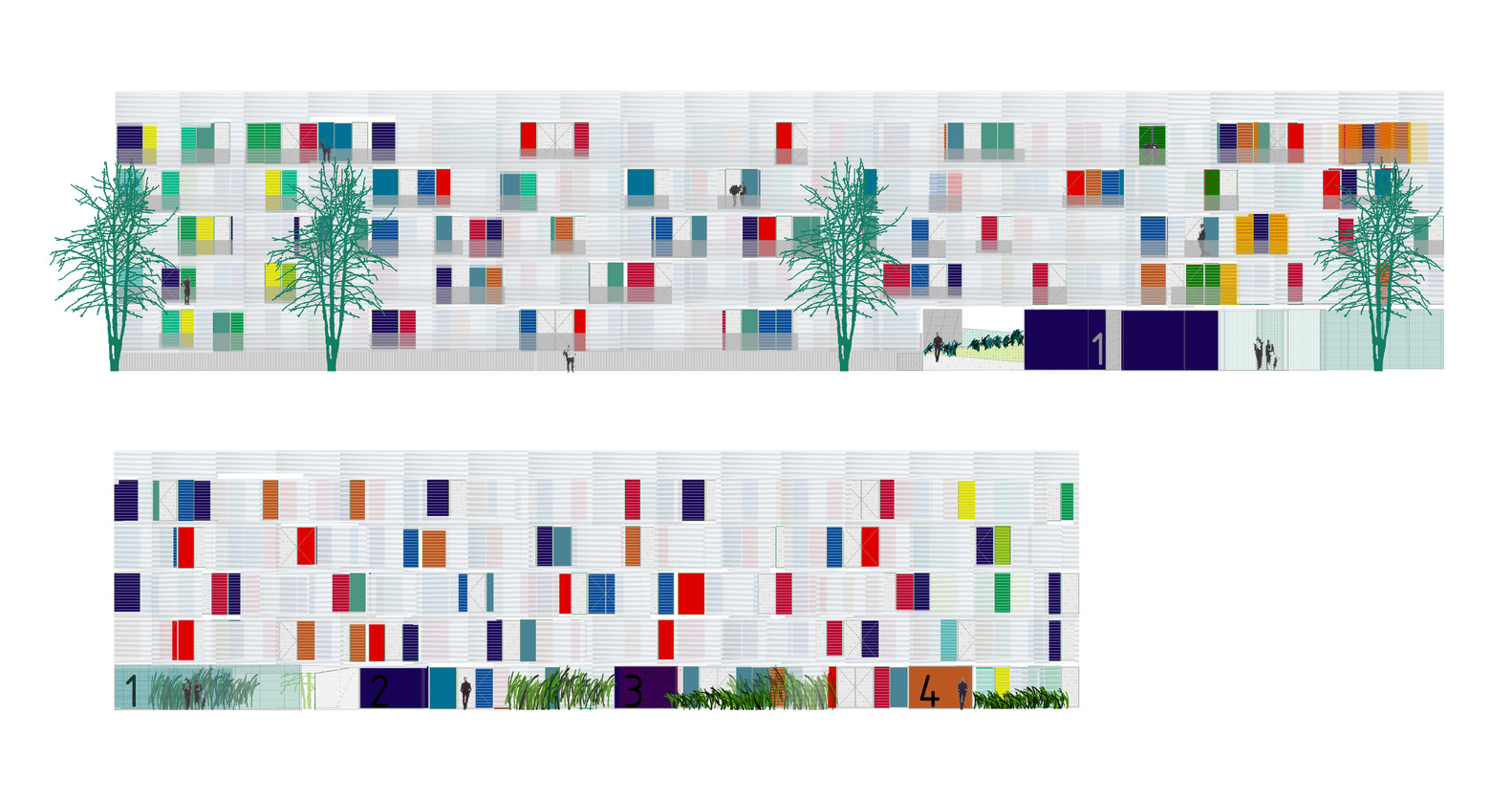 The proposal is a building protected by two galleries, that has a interior dwellings space released of the presence of the structure. The mechanical and wet spaces are concentrated around a "technical wall”. This decision allows: cross ventilation, free disposition of storage and flexible spaces.