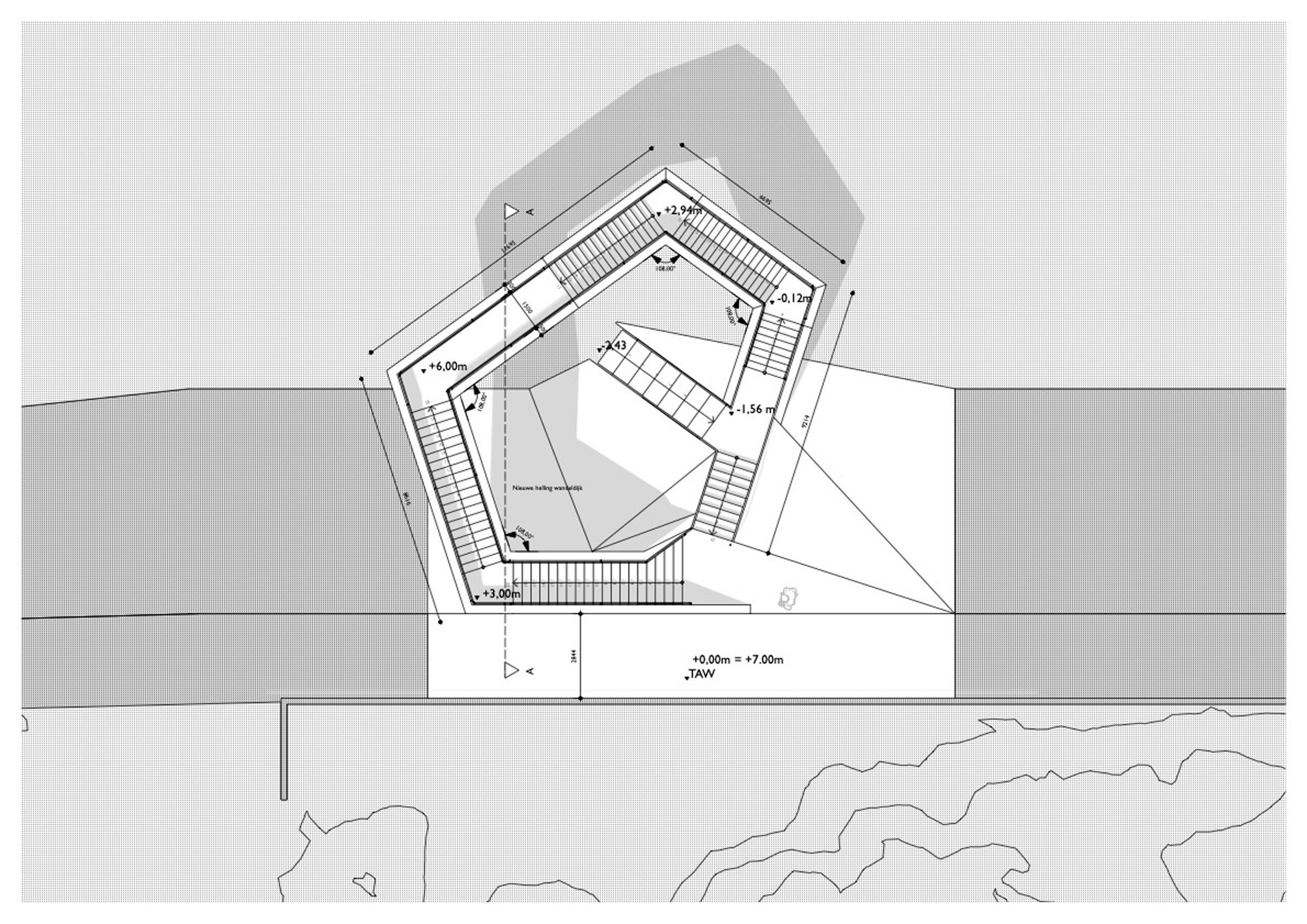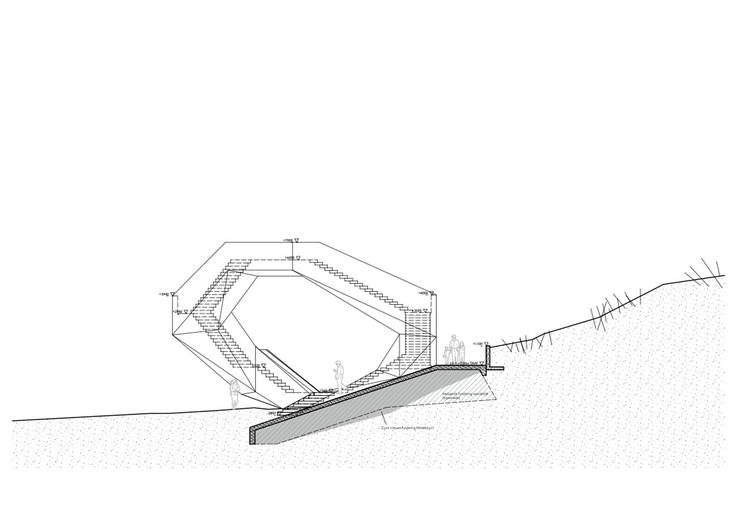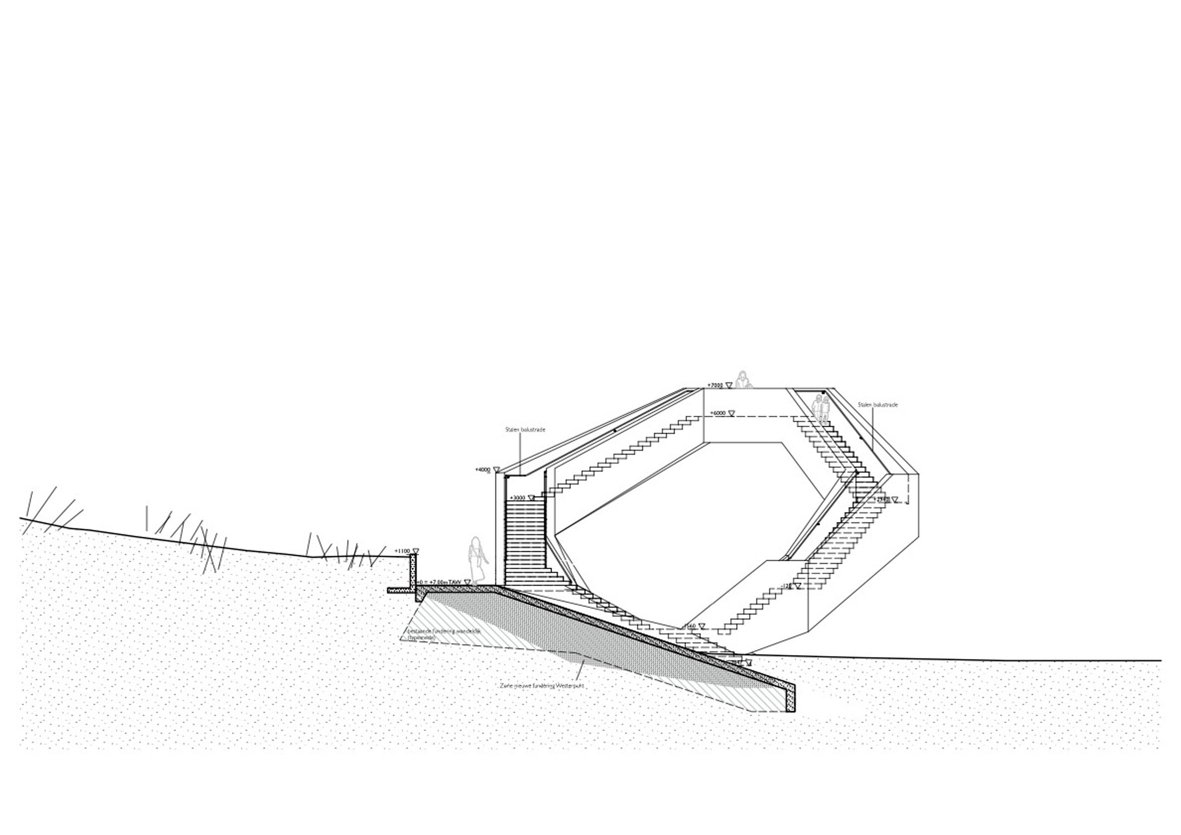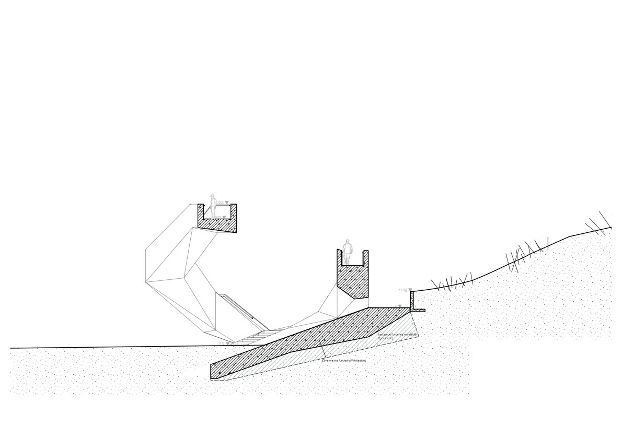 The form of Westerpunt was created using a series of straight stair sections, connected at 108 degree angles with small landings between each and a larger lookout area at the top of the structure.