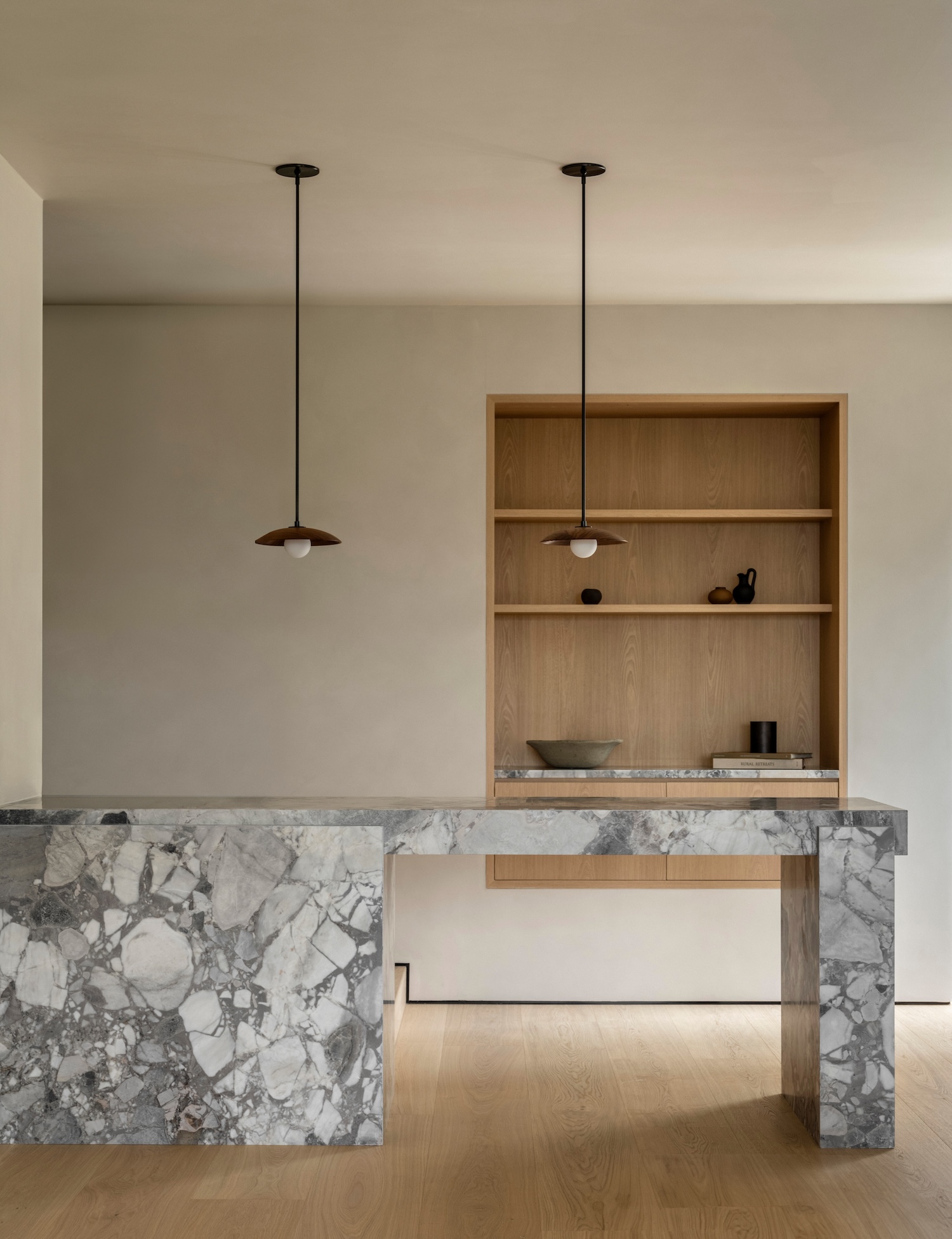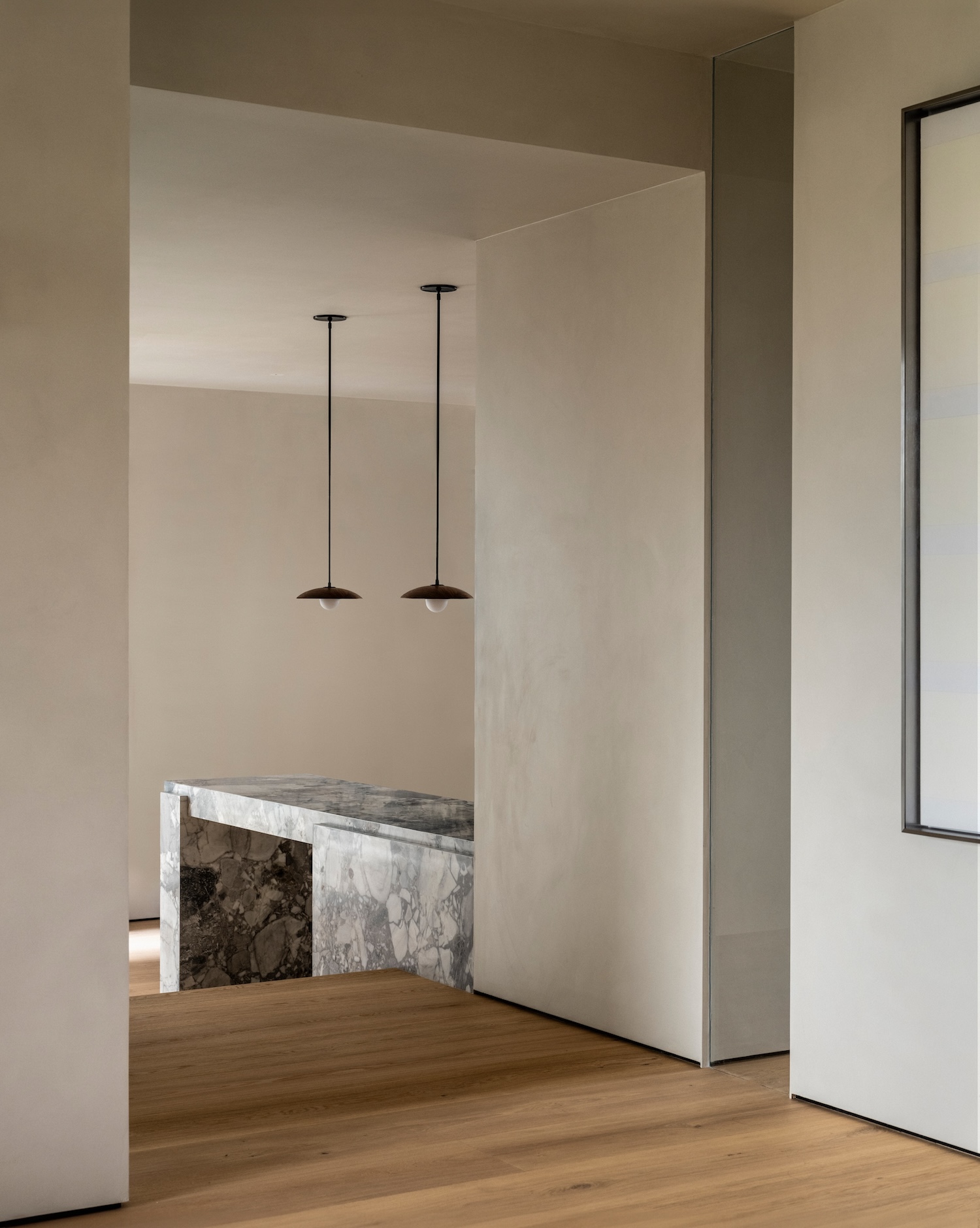 홍콩에 위치한 Repulse Bay Residence는 Norm Architects가 설계한 미니멀리스트 주택입니다. 이 주택은 주변의 산, 바다, 식물들로부터 영감을 받아 실내를 미묘하고 흙색의 팔레트로 구성하여 자연과 조화를 이루고 있습니다. 자연의 아름다움이 실내에 스며들어 고요하고 평온한 분위기를 자아냅니다.