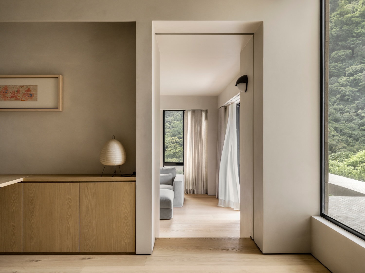 Repulse Bay Residence is a minimalist home located in Hong Kong, designed by Norm Architects. The home draws from its surrounding mountains, sea, and lush vegetation, creating an interior palette of subtle, earthy hues that seamlessly integrate with the untouched beauty just beyond its windows. This harmonious fusion of colors and materials offers a serene backdrop that mirrors the tranquil landscape outside. The design of the residence is inspired by modern galleries, with freestanding walls that both divide and showcase each area, similar to curated pieces in a museum. This approach transforms the home into a functional yet inviting space, where every corner invites exploration and appreciation.