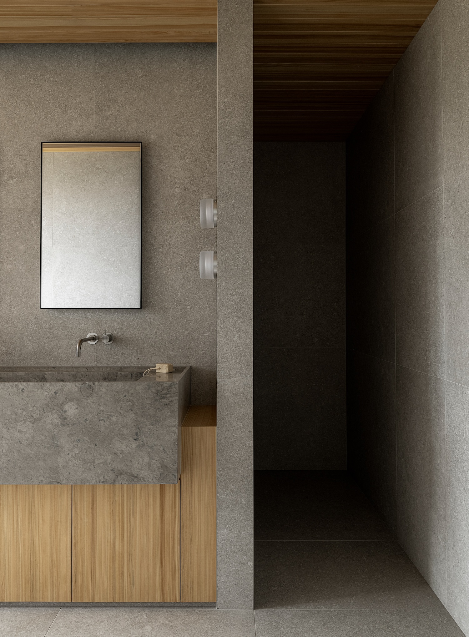 - 자연 재료 사용: 돌, 목재, 돌로마이트 플라스터 등의 자연 재료를 사용하여 촉각적이고 유기적인 분위기를 조성합니다.