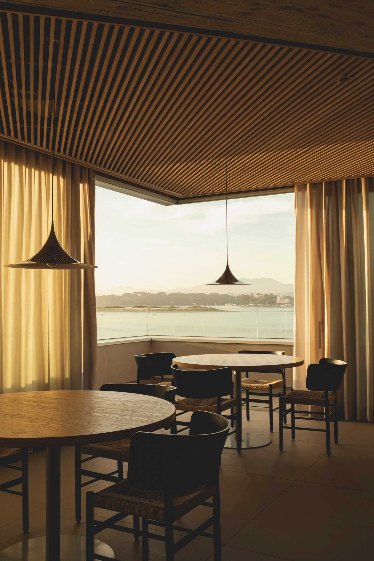Overlooking the tranquil waters of Santander Bay, the restaurant is located on the second floor of the landmark Cantabrian Maritime Museum, which was designed in the mid 1970s by architects Vicente Roig Forner and Ángel Hernández Morales.