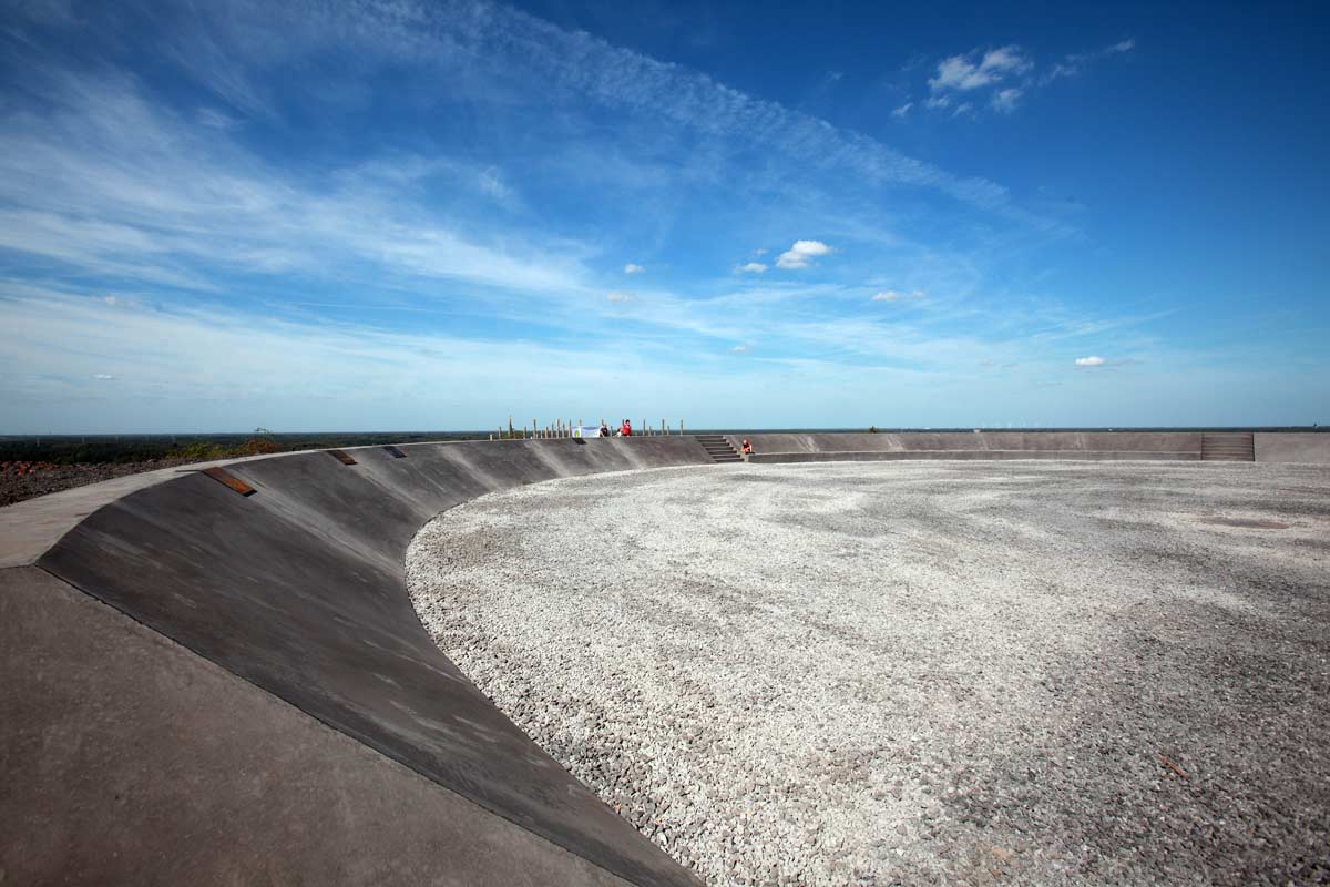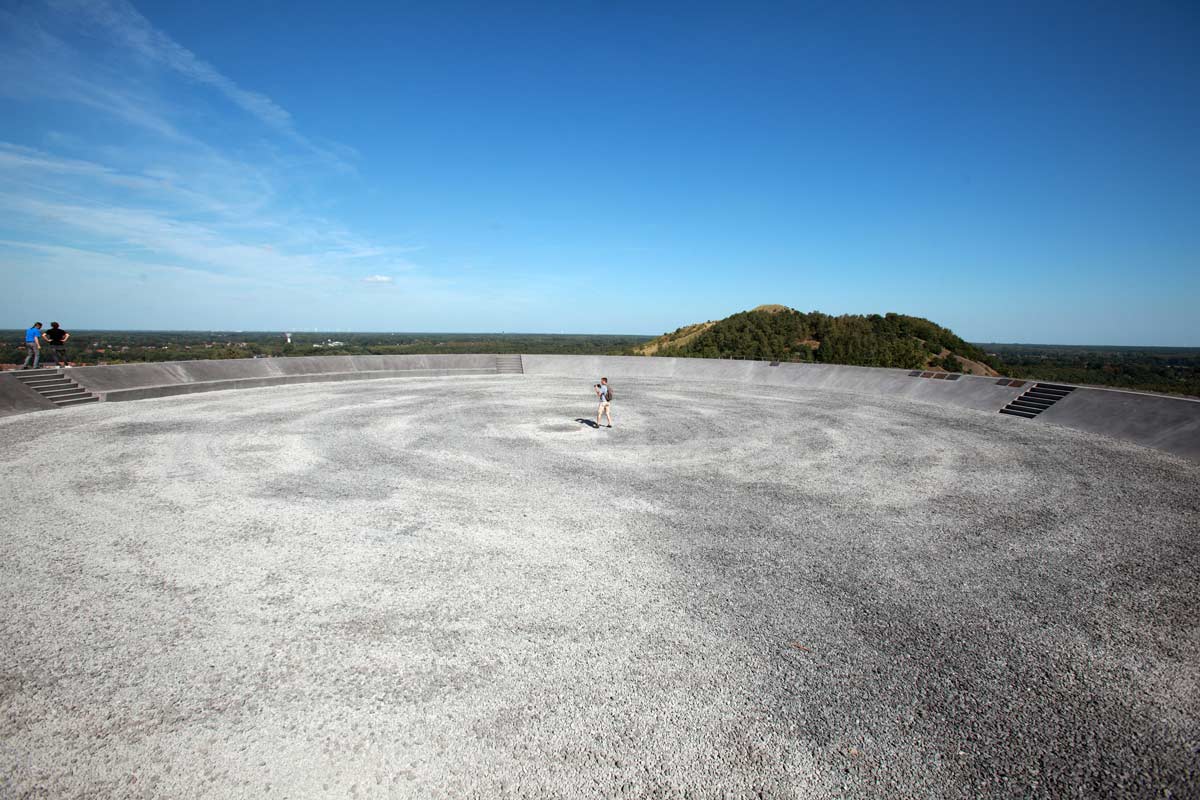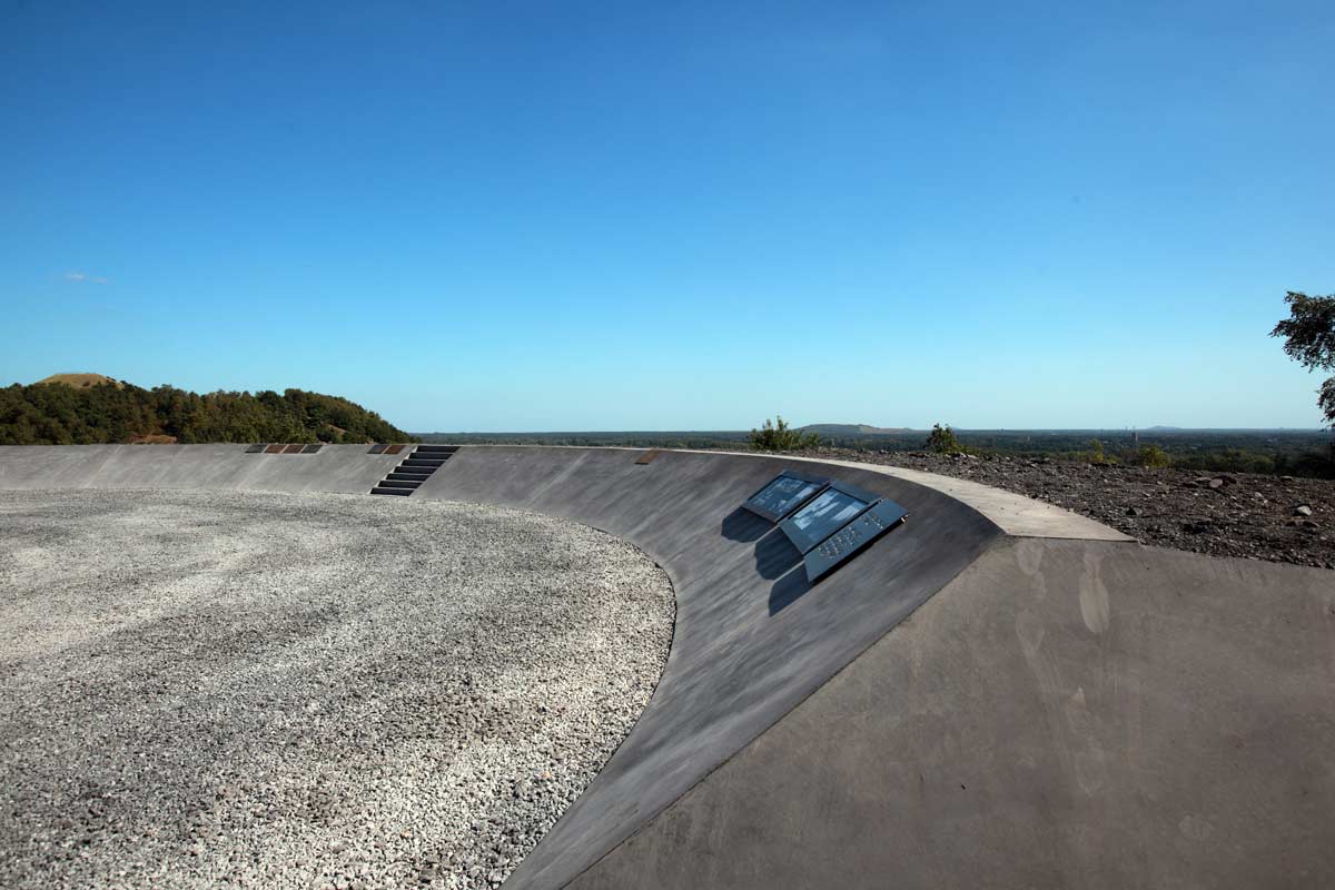 석탄 광장 (Coal Square): 테릴(Terril) 정상에 위치한 공간으로, 과거와 현재의 테릴 특성을 반영하고 있습니다. 광장은 함몰된 형태로 강한 바람으로부터 보호되며, 중간에서 하늘을 바라볼 수 있는 독특한 시야를 제공합니다. 광장의 가장자리에는 좌석 공간과 함께 현장 및 주변 광산 경관에 대한 역사적 정보가 포함되어 있습니다. 이러한 디자인은 방문객들에게 과거의 유산을 이해하고 경험할 수 있는 기회를 제공합니다.