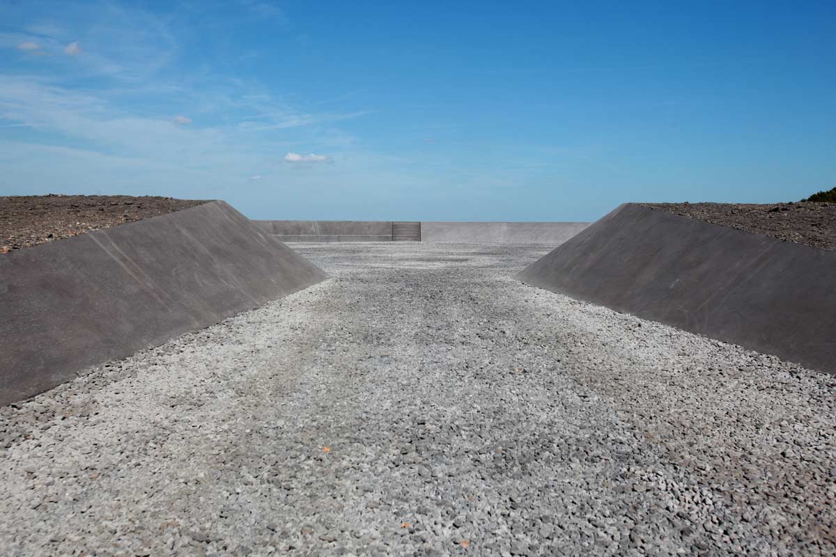 On top of the terril, at sixty meter height, a ‘Coal Square’ was created that reflects both the past as the present character of the terril. The square is sunken and visualises the presence of the ‘black gold’. Its sunken position provides shelter from the strong winds at the top of the hill. In the middle of the square the horizon will not be visible anymore, directing full attention to the clouds above. The sloped edges of the Coal Square can be used for seating and contain historic information on the site and the surrounding mining landscape. Visitors can take a stroll on the raised talud and enjoy the panoramic views on the surrounding Limburg mining landscape. Together, the pole forest, the prismatic play surface and the Coal Square create a unique addition to the Masterplan Adventure Mountain, drawn by Antea Group, and are a valuable contribution to the transition of Flanders’ largest industrial heritage towards a touristic, recreative project. On the 9th of September 2016 the Adventure Mountain was festively inaugurated.