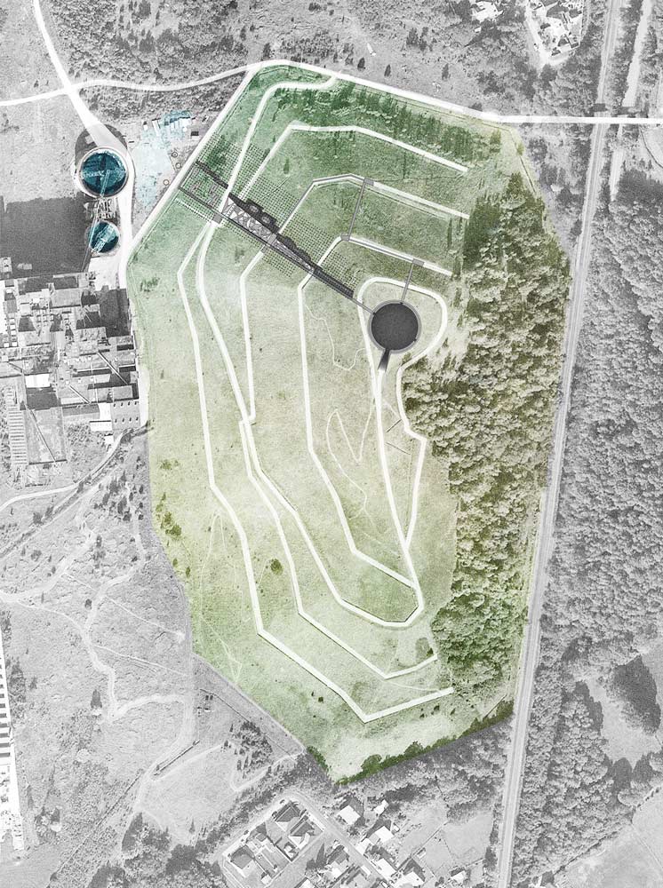 Playscape be Mine is about translation of industrial landscape to a playful recreational environment. Especially interesting is the concrete linear play element that much like the old mining shafts runs through an array of wooden slabs that were supporting the underworld. Furthermore, climbing on the concrete gets increasingly more difficult towards the top and requires some team work, which, according to the designers, acts “as an immaterial reference to the hard physical work of the old mine-workers, who had to trust one another unconditionally”. Reaching the top immediately pays off the effort of climbing. A poetic and beautifully designed coal circle offers an epic view on the surrounding landscape, industrial remains and of course the coal. The storytelling is intelligently manifested through means of abstraction.