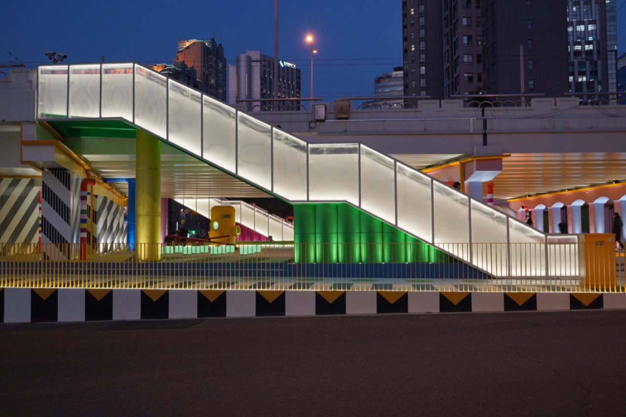 With the installation of colors and graffiti, elements such as pipes, seats, and fences embellish, fill, and redivide the space, and the combination with dazzling lights increases the interactivity and recognizability of the space, while also transforming the dark space under the bridge into a public stage. Young people perform various forms of improvisation here, such as street dance, street bands, skateboarding, and theater. The distinctive site brings unlimited inspiration to young people and provides them with a free and versatile space to showcase themselves, unleash themselves, and sweat their youth, creating a positive cycle of increasing popularity and vitality, and becoming a fertile ground for nurturing art.