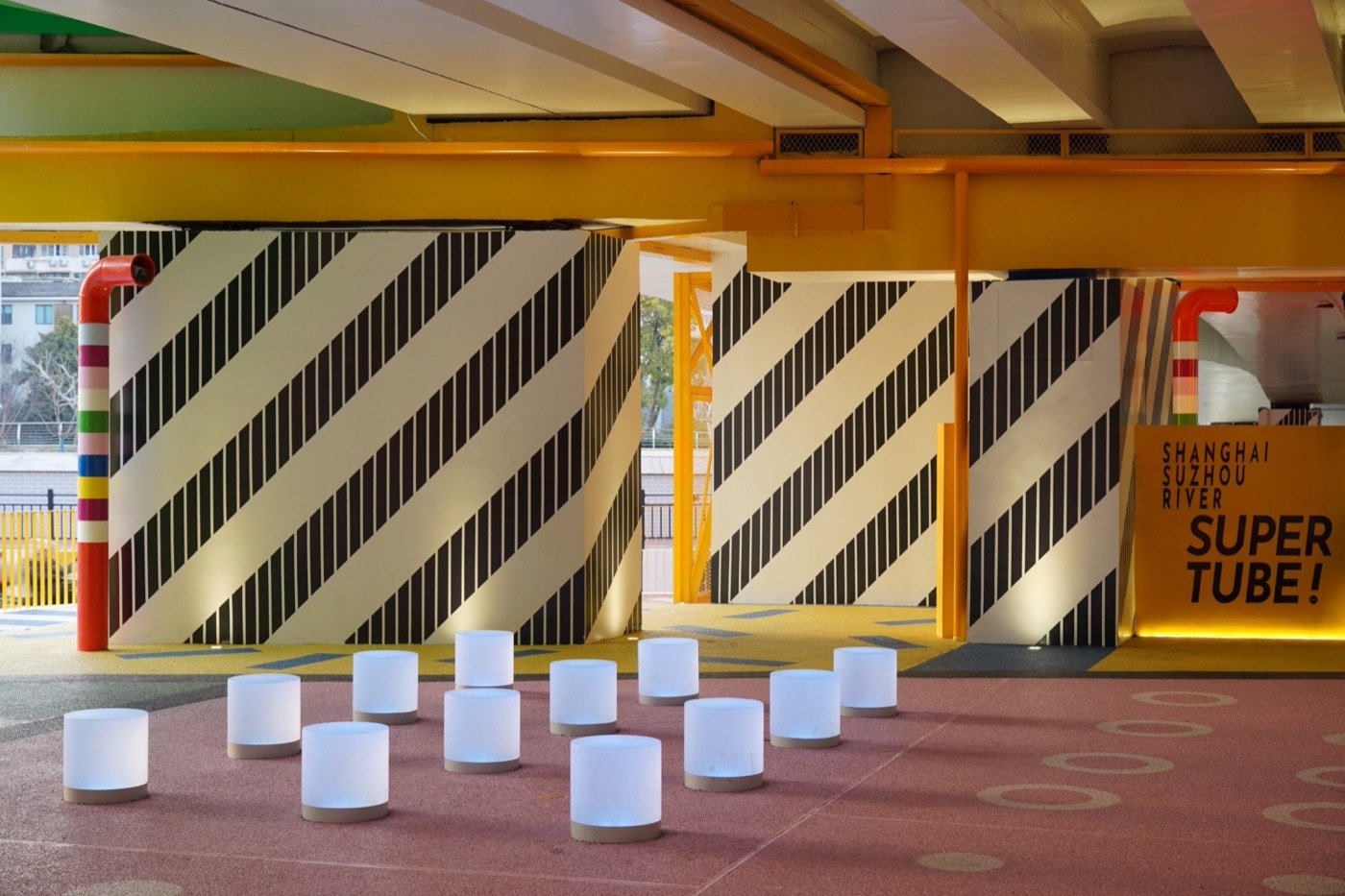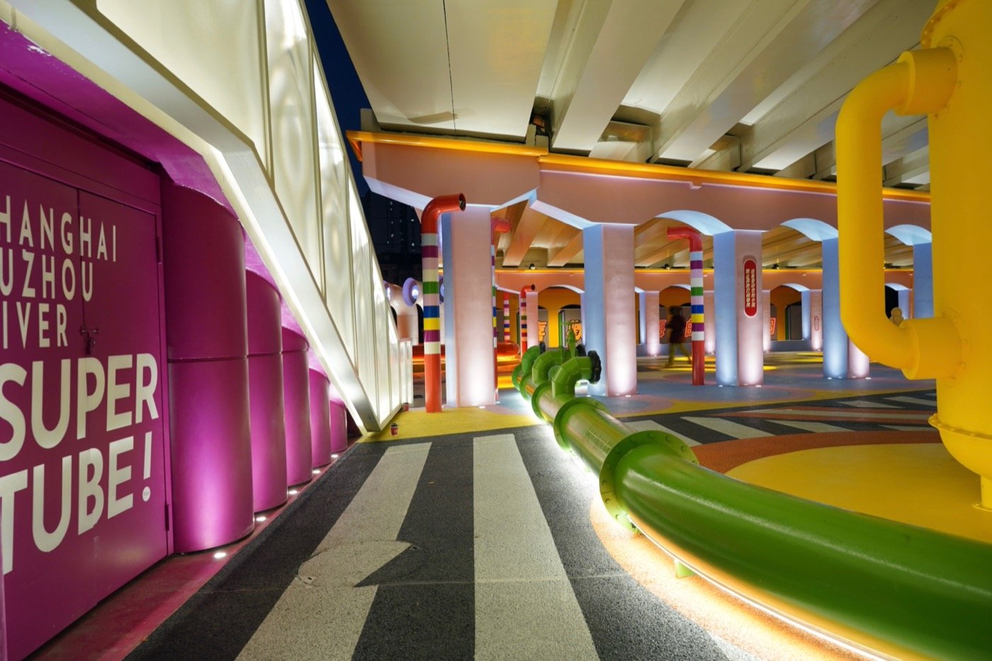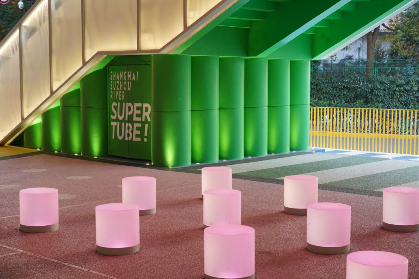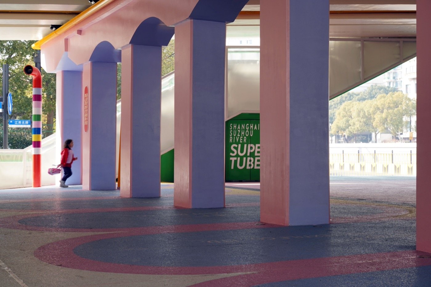 Shanghai Super Tube is a public passage space that we specially transformed under the bridge of Suzhou River. The total renovation area is about 1880 square meters. Although it just opened on New Year’s Day 2024, it has already become one of the must visit places for young people. The project is a passage space under the bridge, located at the intersection of two main roads on the east side of Changning District in downtown Shanghai, underneath the main traffic bridge Cao Yang. It is the first infrastructure design node of the leisure and cultural belt under the Suzhou River in Changning District and also serves as the gateway to the three major administrative districts of Changning, Jing’an, and Putuo in Shanghai.