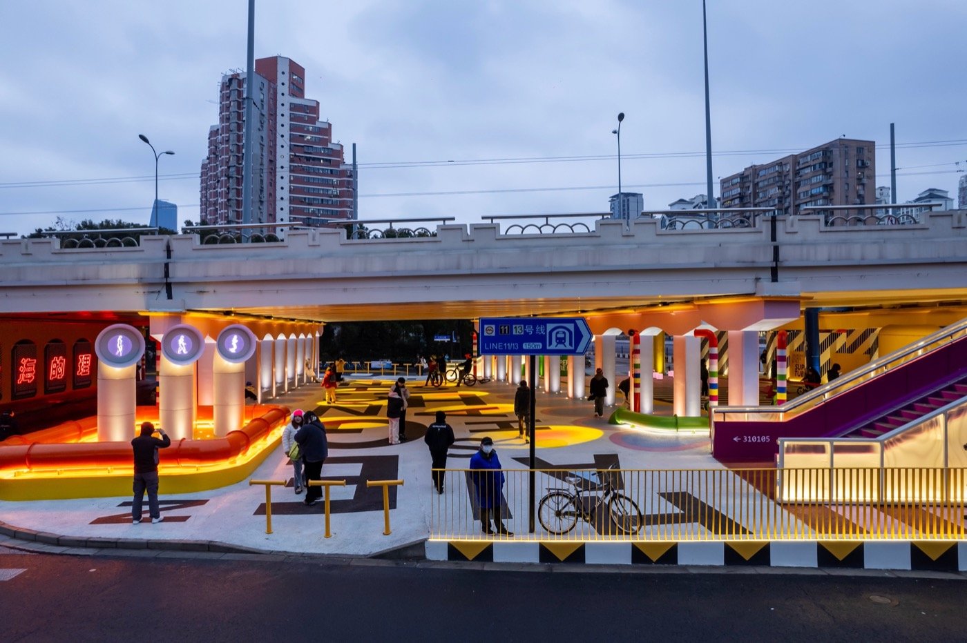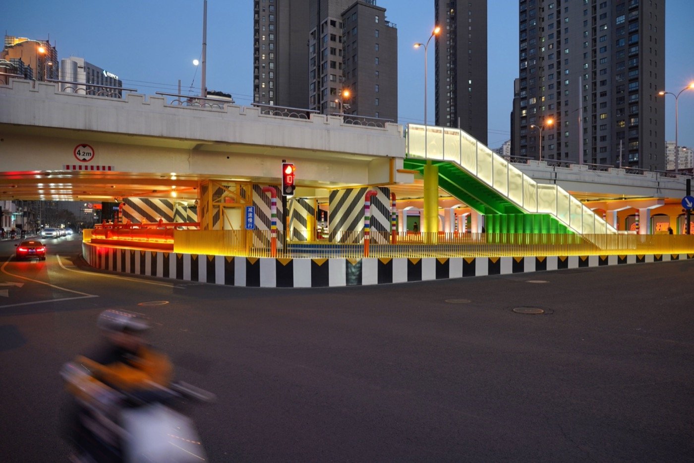 Urban infrastructure construction often has high engineering professionalism and functional specificity, but it fails to directly link with the construction of high quality urban spaces in daily life. The original site only served as transportation infrastructure with a single function. The transformation design focuses on releasing the spatial ambiguity of infrastructure and constructing “field infrastructure” by overlapping urban public services, in order to promote the construction of high-quality urban public spaces. The renovated Shanghai Super Tube opens its walls, activates the gray space with highly saturated art graffiti, and transforms it into a distinctive gateway showcase space, forming a continuous pedestrian node along the main road of Changning District with Zhongshan Park and 88 Commercial Plaza. The design team cooperated with the owners to plan a series of community commercial services on the site, such as cafes, trendy restaurants, convenience stores, etc., which not only stimulate the economic growth of the surrounding community but also promote community vitality, increase convenience for residents’ daily use, and enhance their sense of happiness. This new form of overlaying public services with urban infrastructure realizes the exploration of a new model for urban infrastructure transformation and renewal.