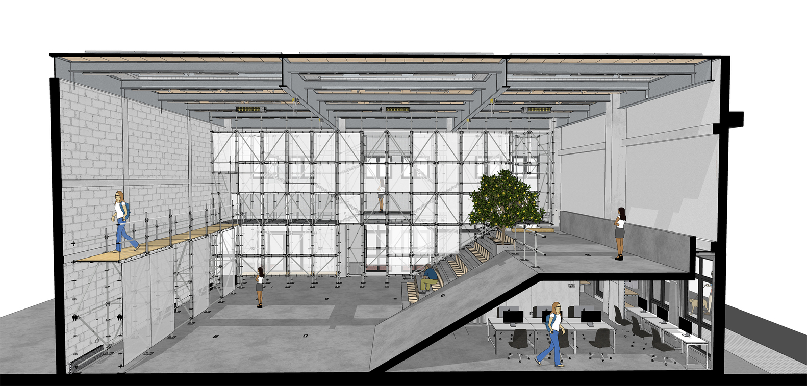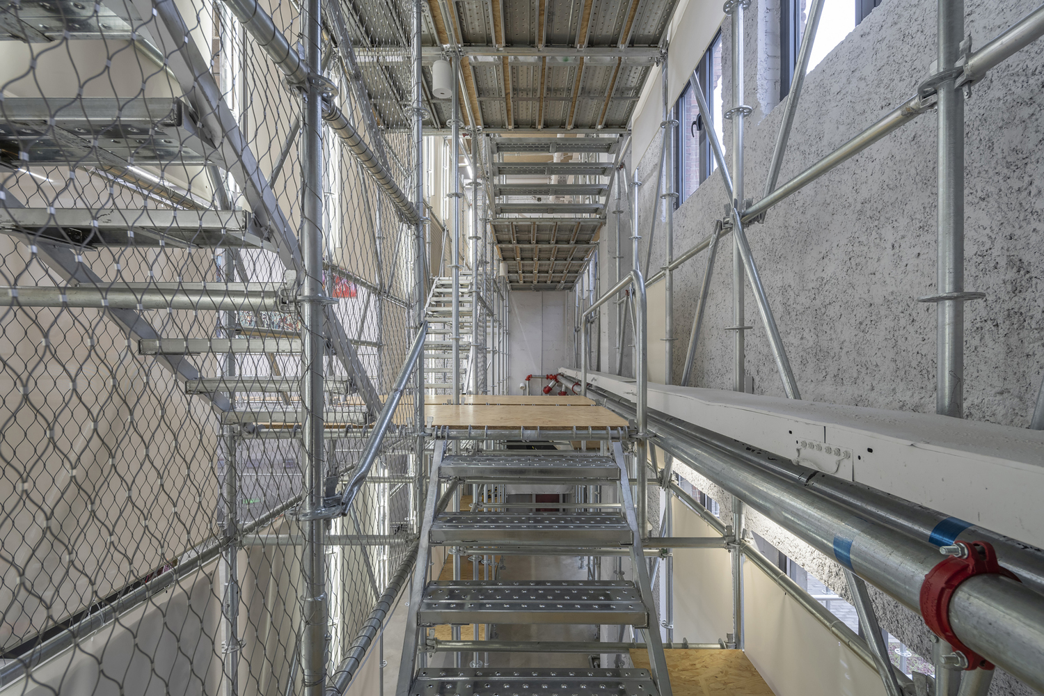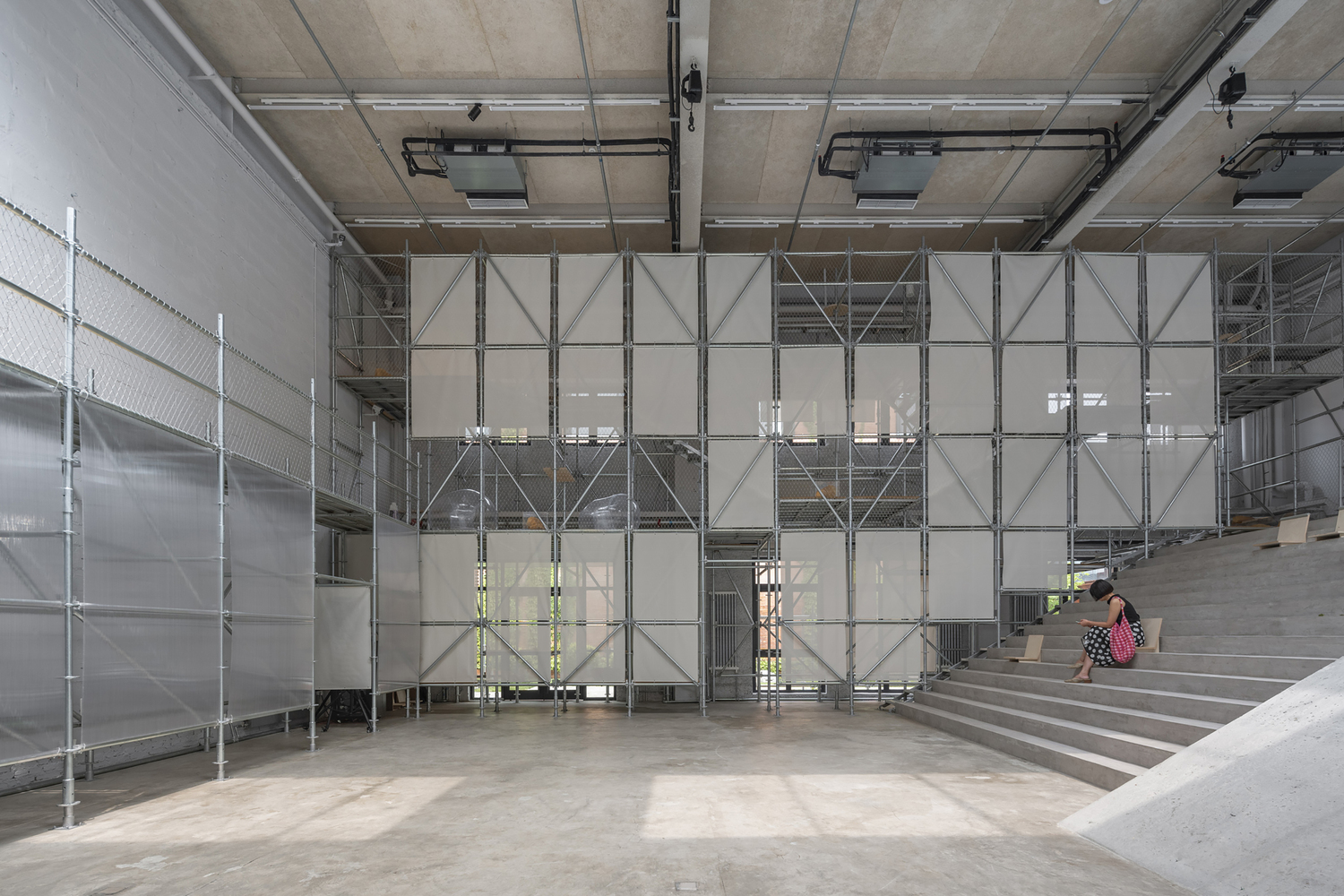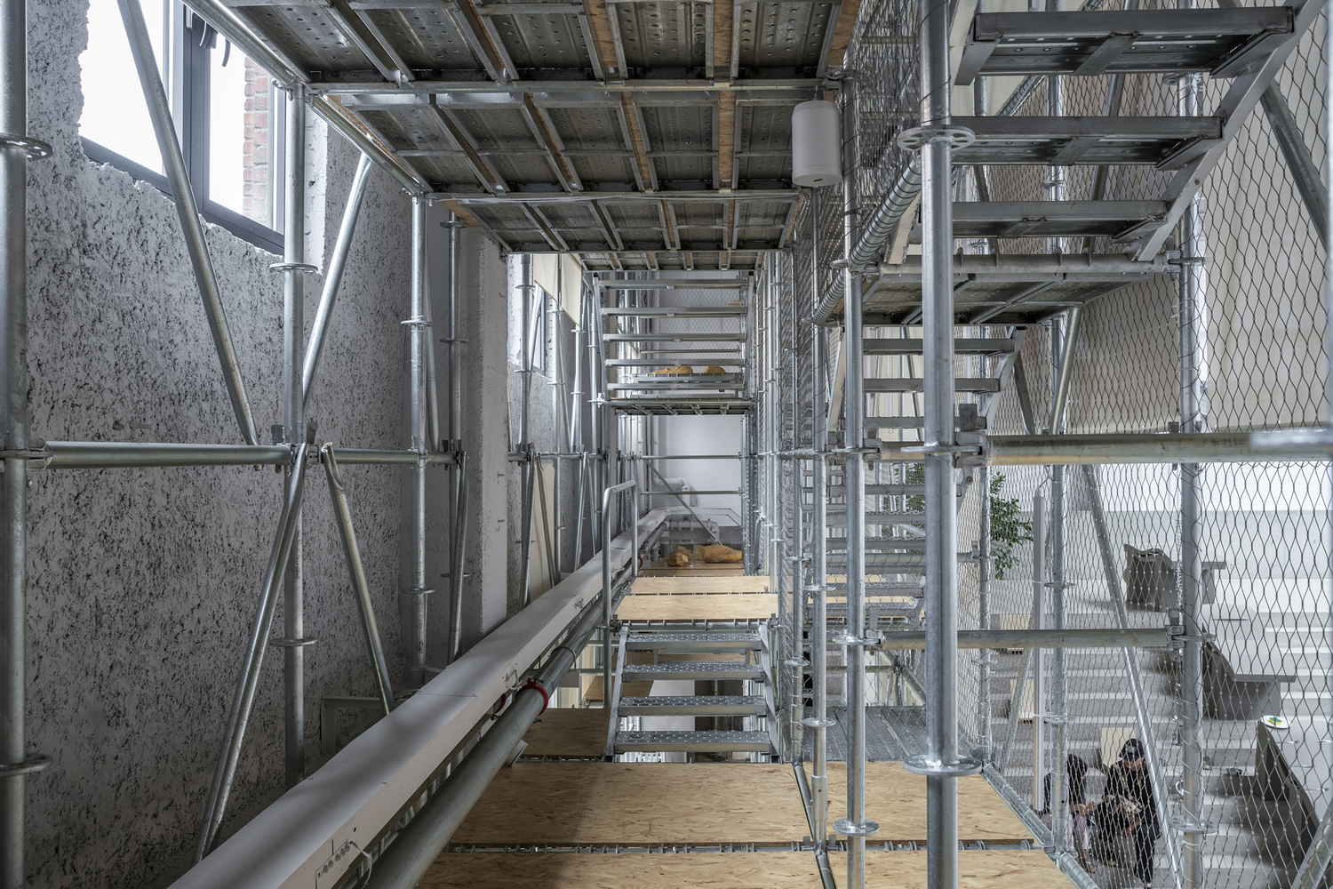 임시적인 성격의 비계 구조를 도입하여 공간에 자유로움과 가능성을 부여했습니다.