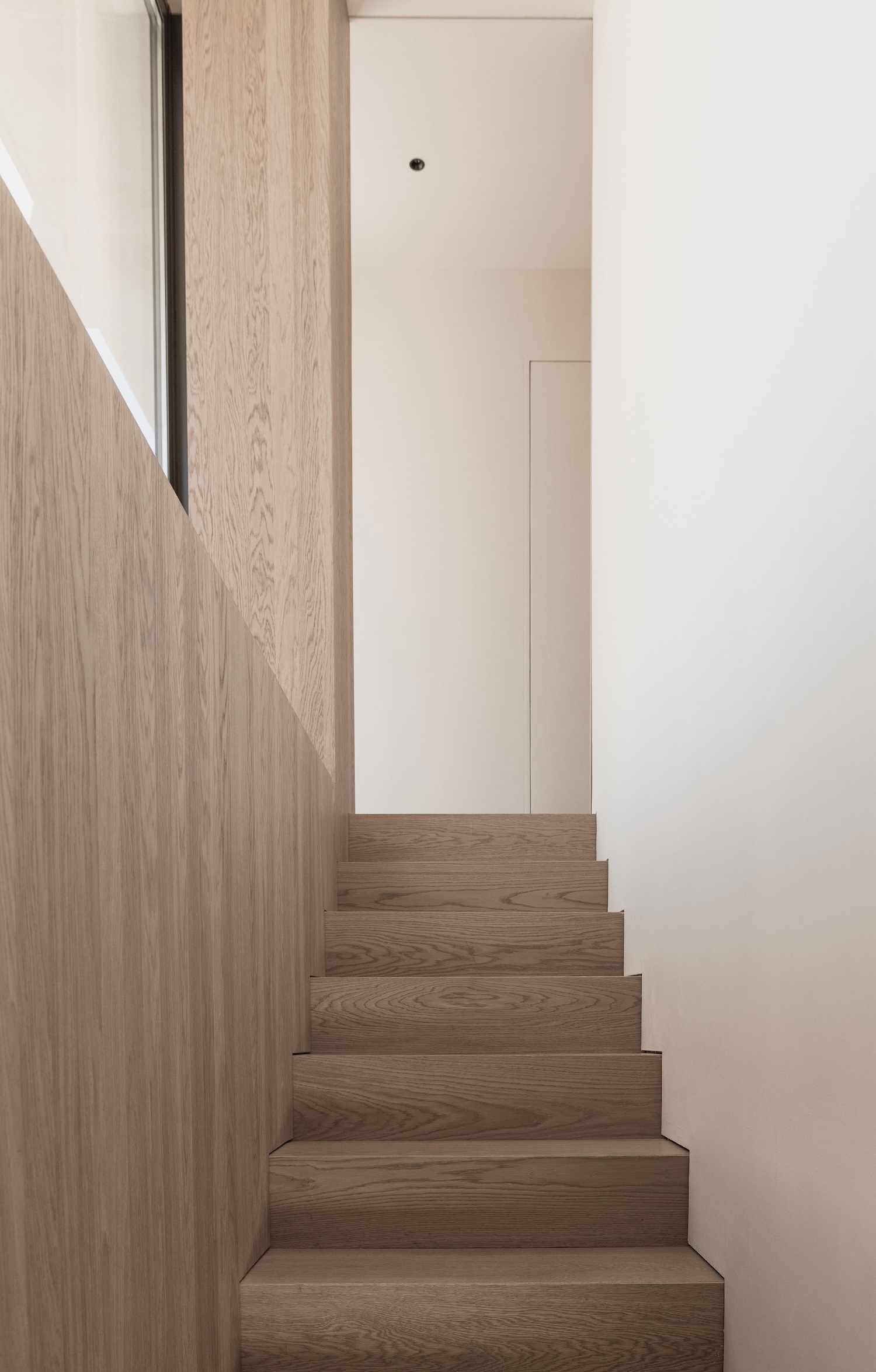 전문가 의견: Francesc Rifé Studio의 설계는 단순하면서도 깊이 있는 미니멀리즘을 잘 보여줍니다. 이 프로젝트는 자연과의 조화와 고급스러운 재료 선택을 통해 주거 공간의 새로운 가능성을 제시합니다. 공간의 일체감을 극대화하기 위해 참나무 패널을 벽과 계단, 가구에 일관되게 사용한 점은 주목할 만합니다. 이러한 일관된 재료 사용은 시각적 통일성과 안정감을 제공합니다. 실내외를 자연스럽게 연결한 디자인은 현대적이면서도 자연 친화적인 삶을 강조합니다.