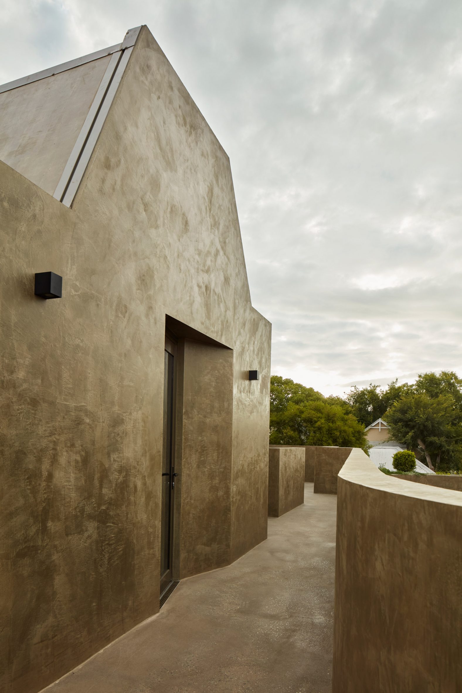 Proclamation House is characterised by its sculptural concrete form, which is coated in an insulating hemp render inside and out.