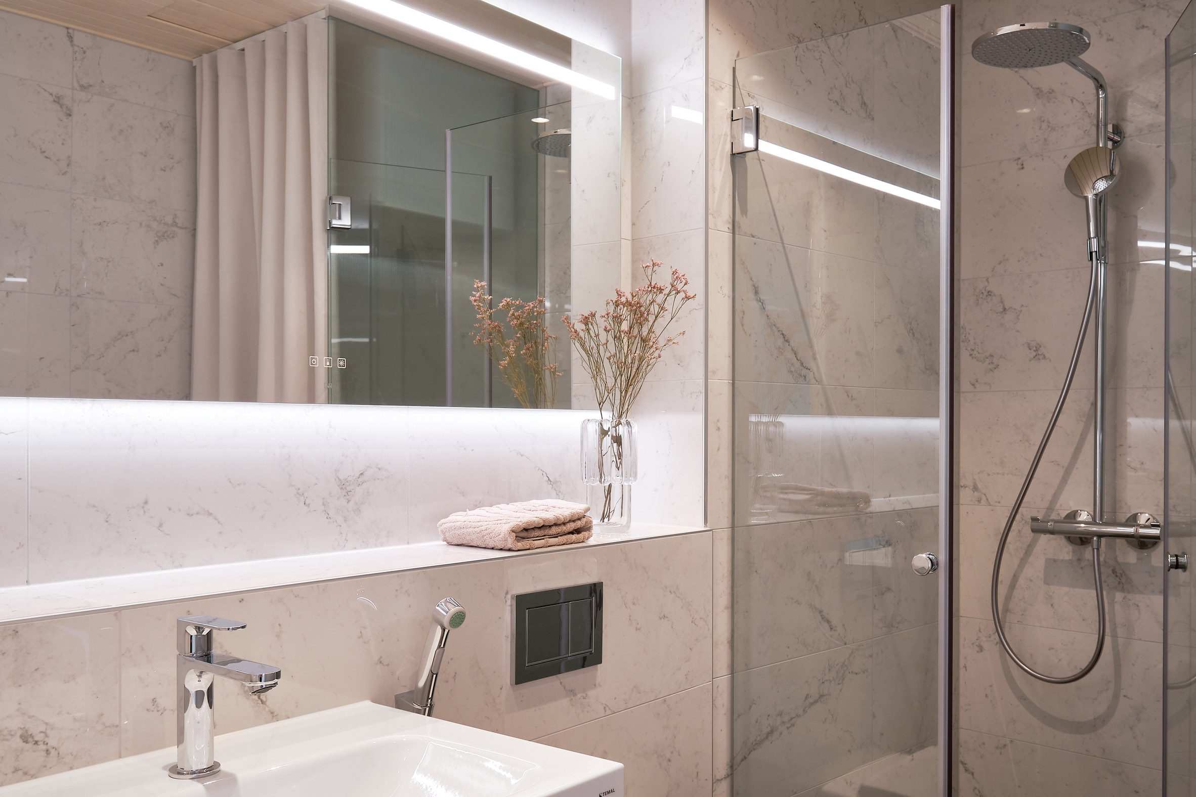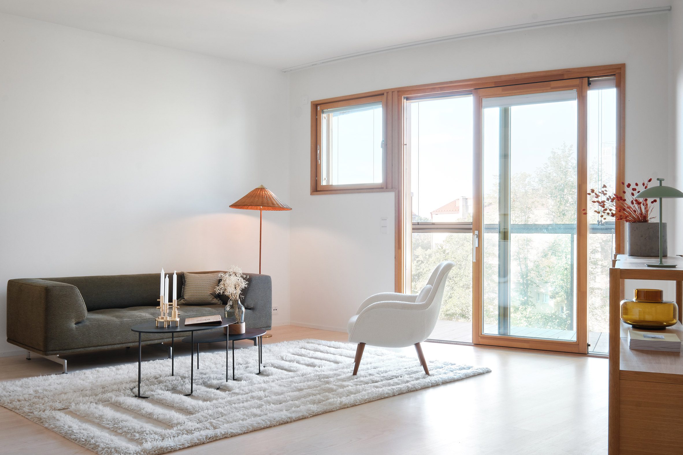 이 프로젝트에서 각 아파트는 최대한 많은 자연광을 받아들이도록 설계되었습니다. 북유럽 특유의 긴 겨울을 고려한 설계로, 각 공간은 효율적이면서도 따뜻한 환경을 제공하며, 바닥 난방과 같은 에너지 절약형 시스템이 적용되었습니다. 친환경적 건축 재료인 핀란드산 스프루스와 지열 에너지 시스템을 통해 지속 가능한 건축을 실현하고자 했습니다.