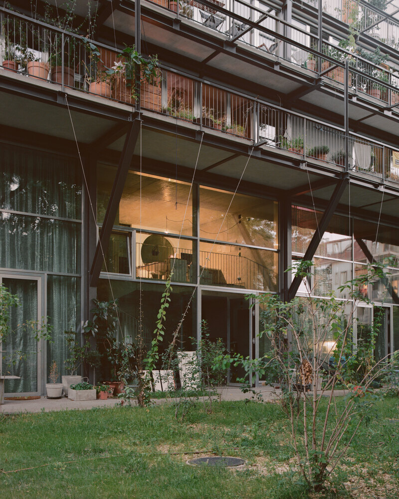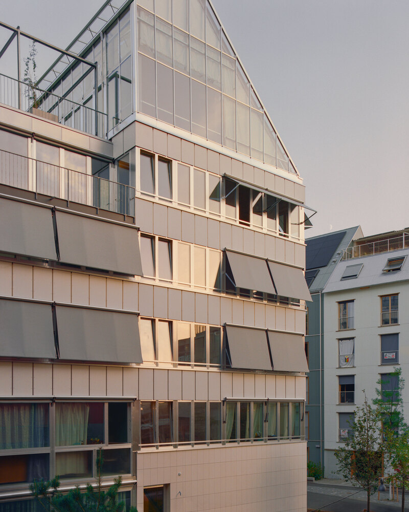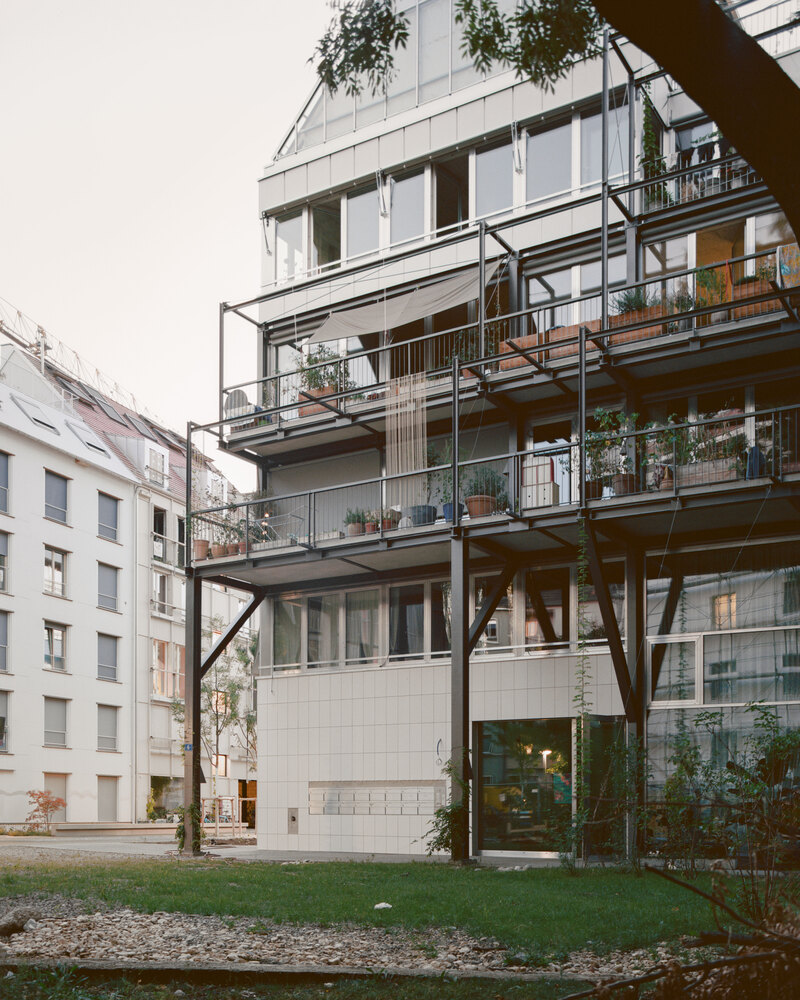 이곳에는 약 40명의 거주자가 작은 상업 공간, 2층짜리 주거 스튜디오, 공동 입구 홀을 갖춘 아파트, 큰 아버를 가진 무장애 아파트 등 다양한 형태의 주거 공간에서 생활하고 일하고 있습니다. 또한 조커룸, 게스트룸, 옥상의 온실 등 공용 공간은 주민들의 필요에 따라 다양하게 활용될 수 있도록 마련되어 있습니다. 이러한 공간 구성은 개별 생활과 공동체 생활의 경계를 넘나들며, 주거의 유연성과 기능성을 동시에 제공합니다.