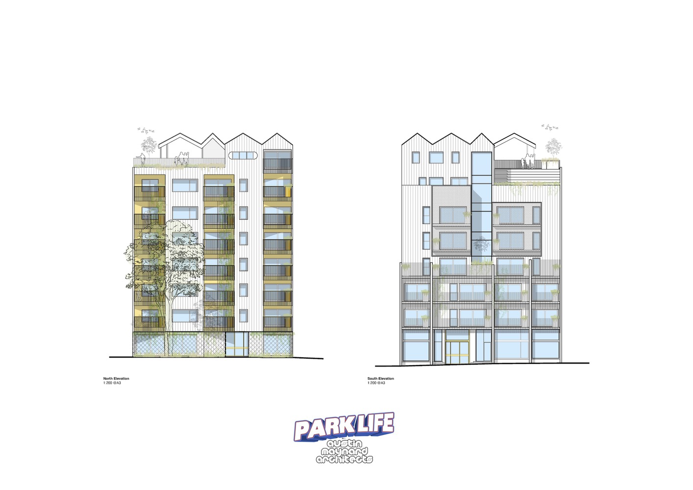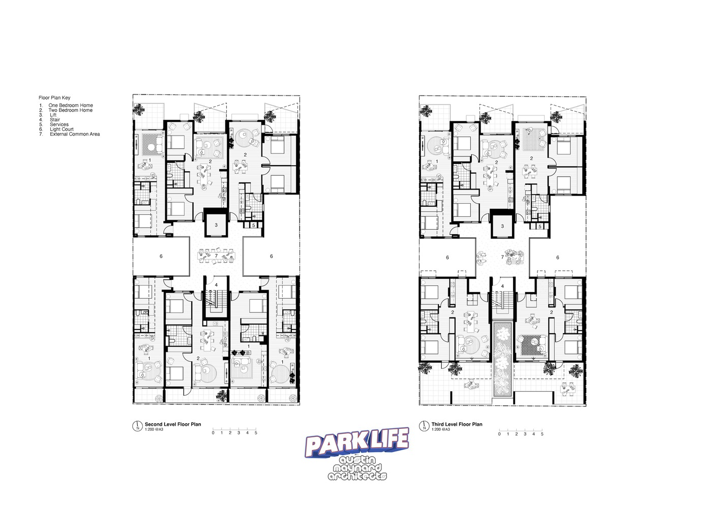 In contrast to the big urban moments, there is a domestic scale playfulness on the skyline. Instead of a large open, windswept terrace, ParkLife provides a series of spaces varying in size, function, and character.