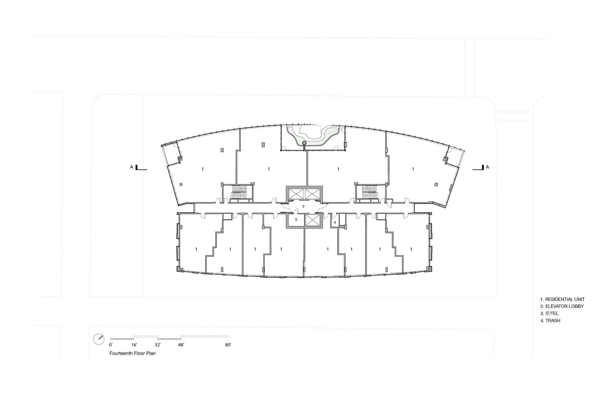 건물 내부에는 주민들이 이용할 수 있는 피트니스 센터, 공용 라운지, 야외 좌석 공간 등이 배치되어 있으며, 이러한 공간들은 거주자들이 일상에서 자연과 교류하고, 사회적 상호작용을 할 수 있는 장을 제공합니다. One River North는 단순한 주거 공간을 넘어, 자연 속에서의 삶을 도심에서도 경험할 수 있도록 설계되었습니다.