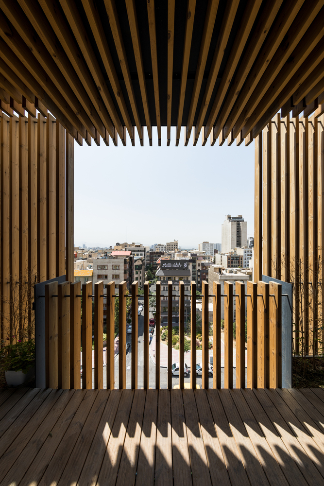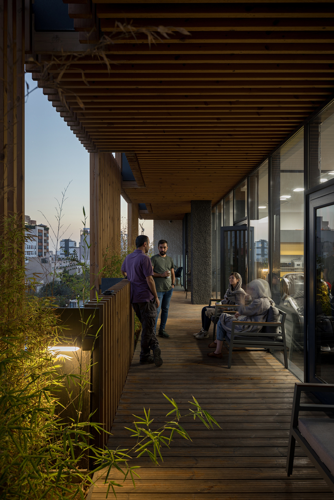 Sarv Office Building의 이중 레이어 파사드는 나무와 금속을 사용해 외부와의 시각적 연결을 유지하면서도 자연광을 부드럽게 실내로 들여오는 역할을 합니다. 또한, 파사드는 강한 햇빛을 차단해 실내 온도를 적절히 유지하는 동시에 자연 환기를 통해 쾌적한 실내 환경을 제공합니다. 이러한 디자인 요소는 도시 환경과 조화를 이루며 건물이 외부로부터 독립된 공간을 제공하면서도 자연과의 상호작용을 강조하는 건축 철학을 반영합니다.
