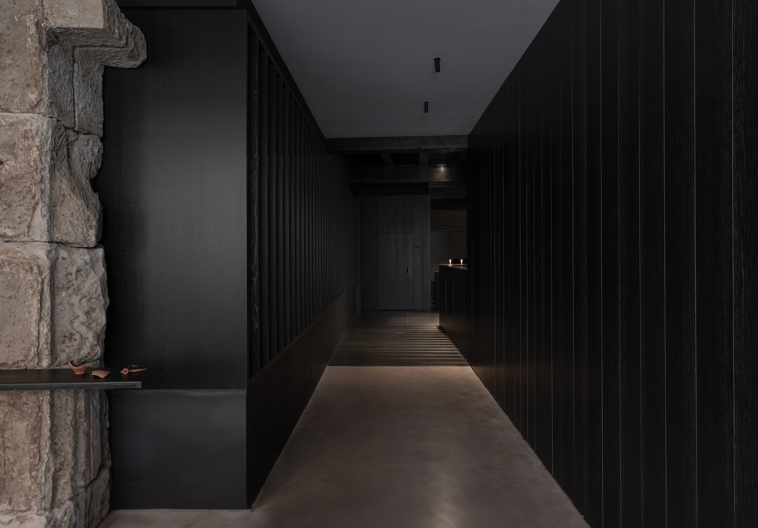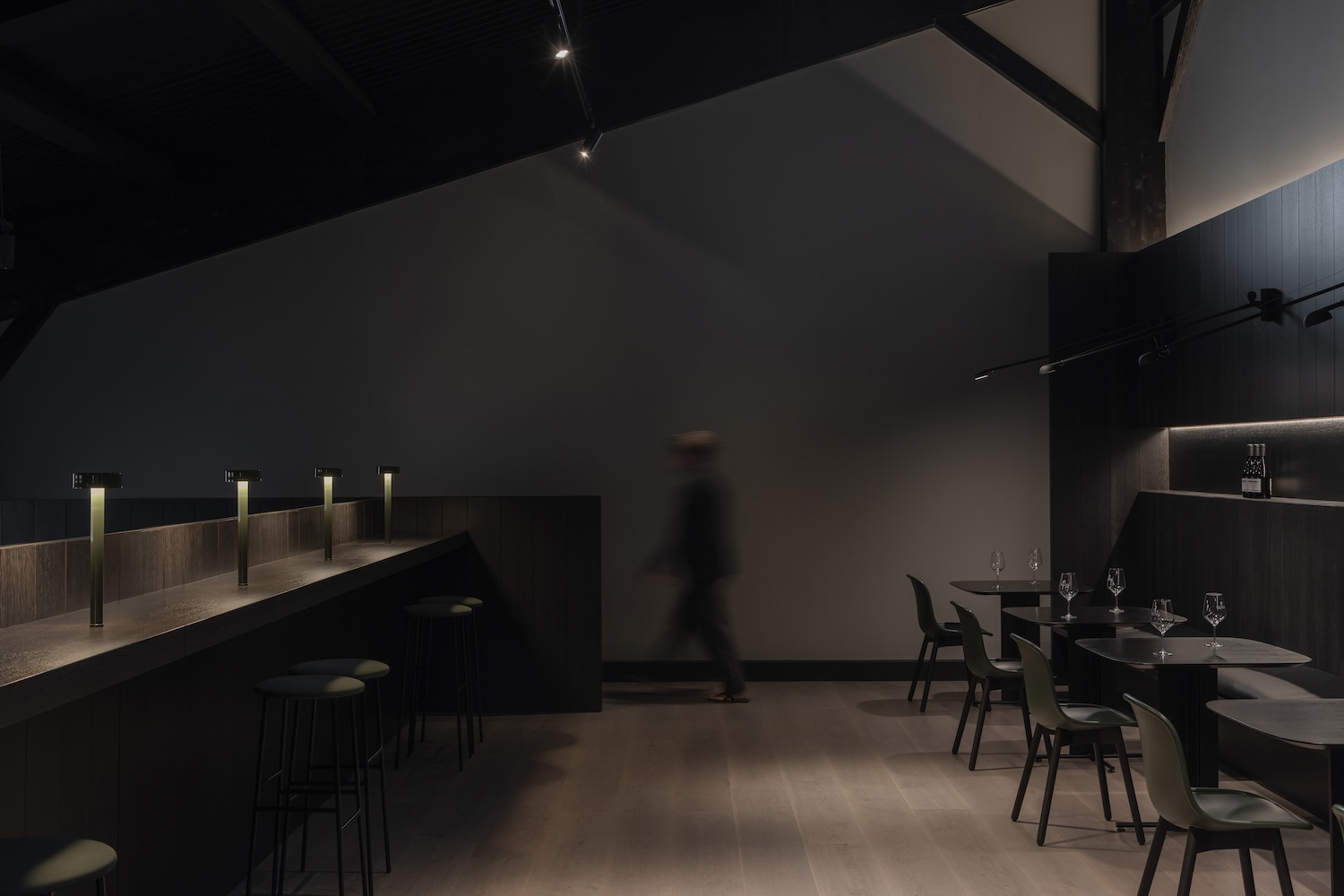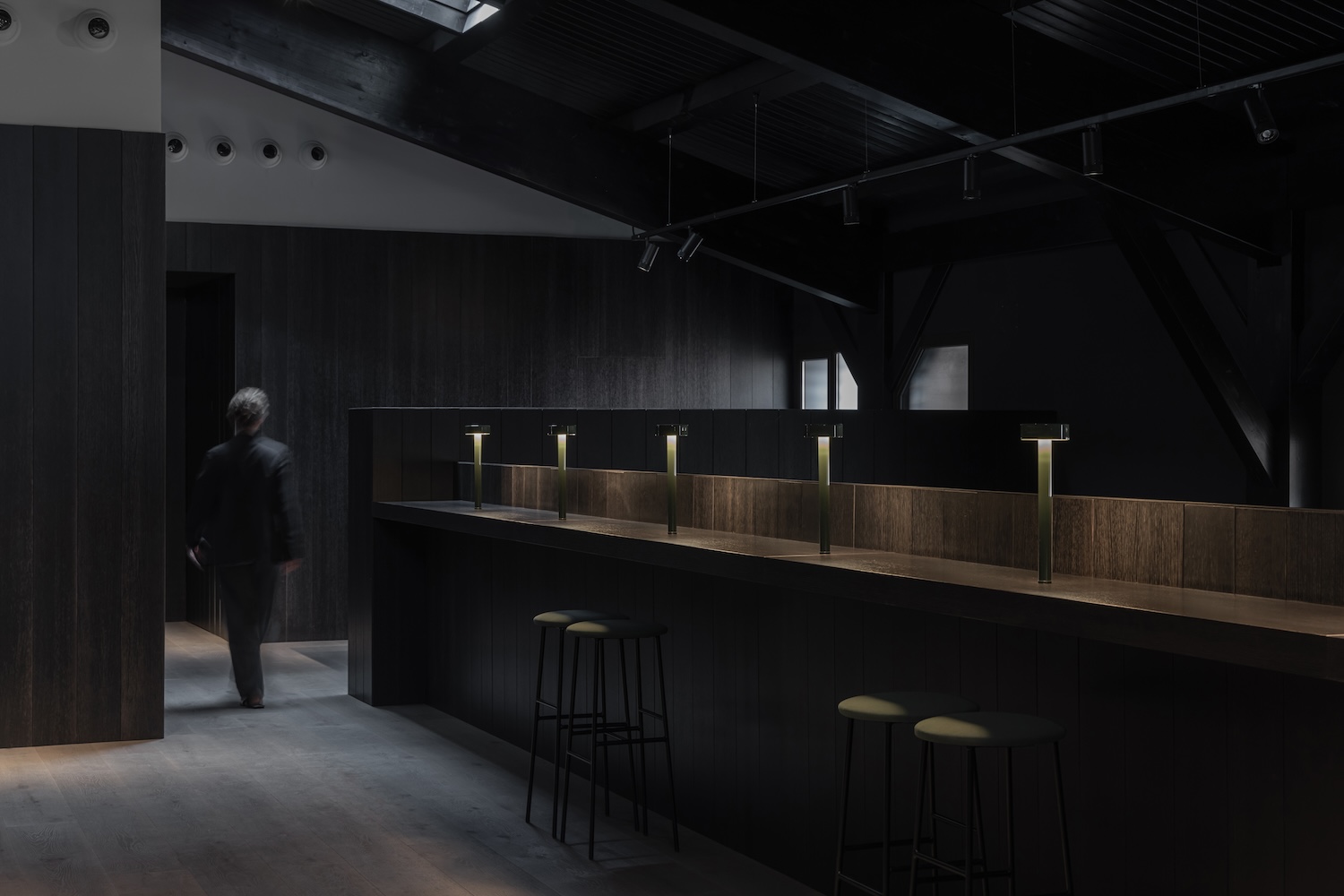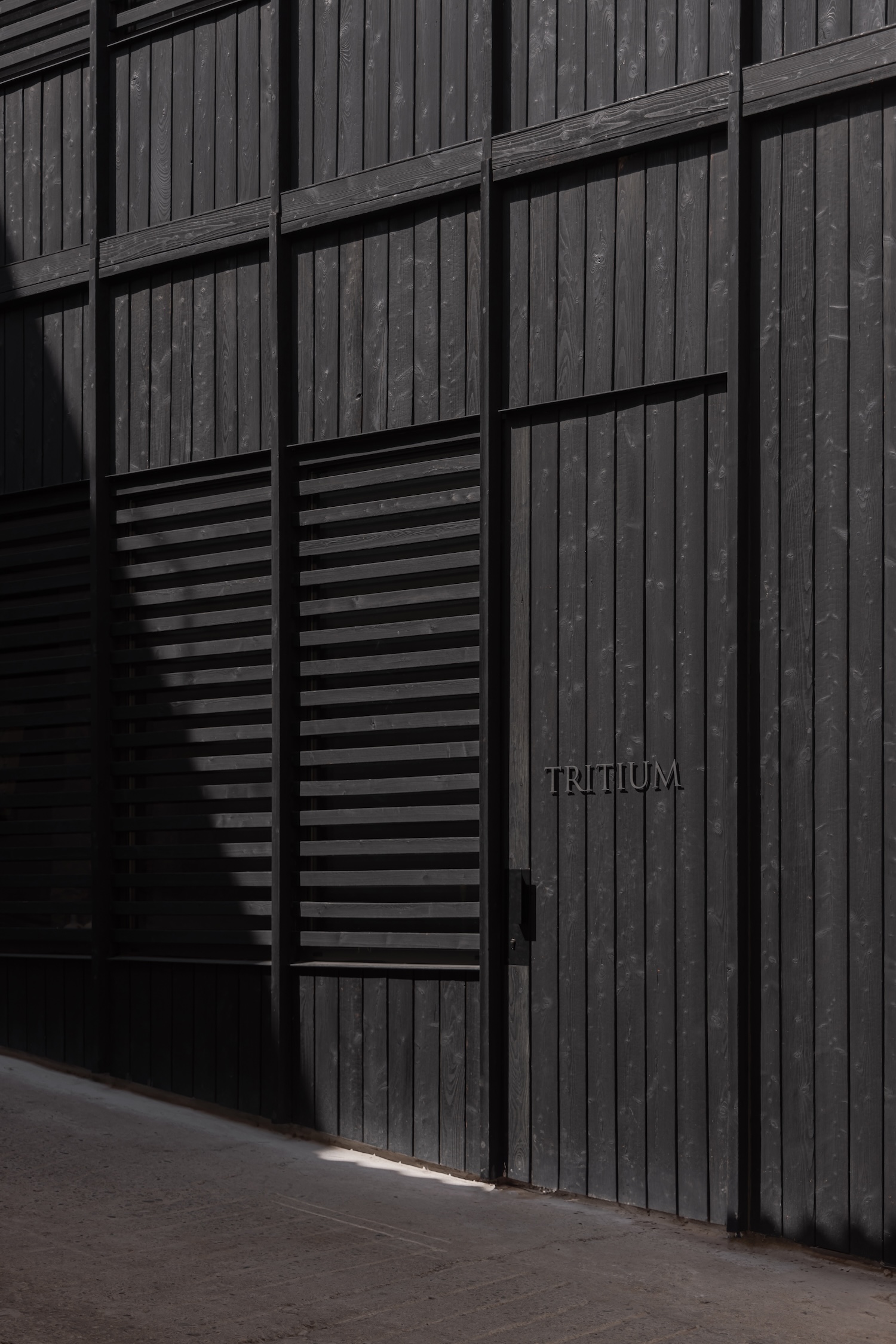 Tritium Winery의 설계에서 가장 두드러진 특징 중 하나는 재료 선택입니다. 탄화된 목재와 검은 강철이 주로 사용되었으며, 이는 공간의 내구성을 높이면서도 미니멀리즘적 디자인을 구현하는 데 중요한 역할을 했습니다. 특히, 이 재료들은 와이너리의 전통적 요소인 돌과 조화를 이루며, 과거와 현대를 연결하는 중요한 매개체로 작용합니다.