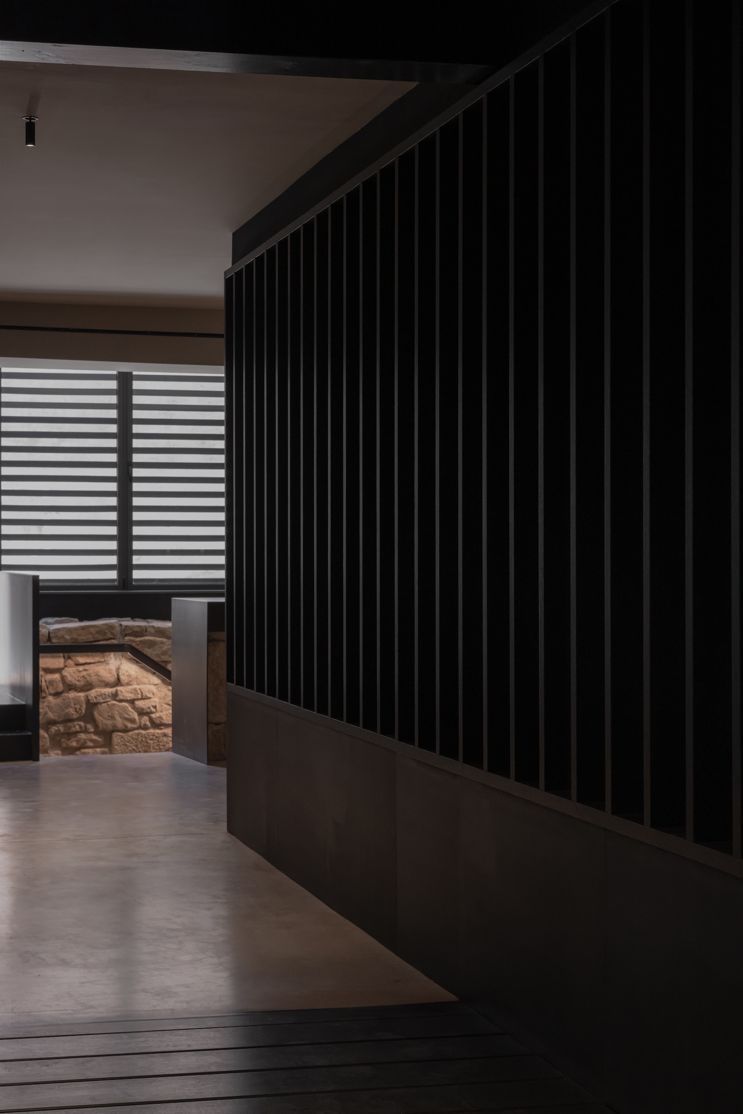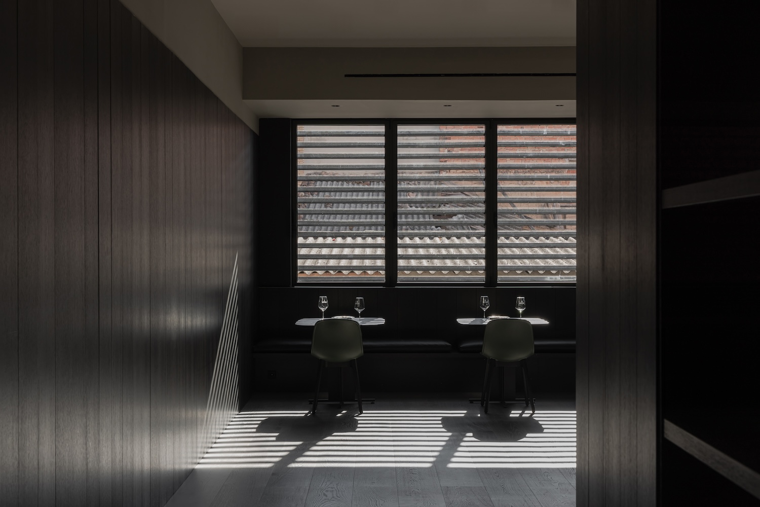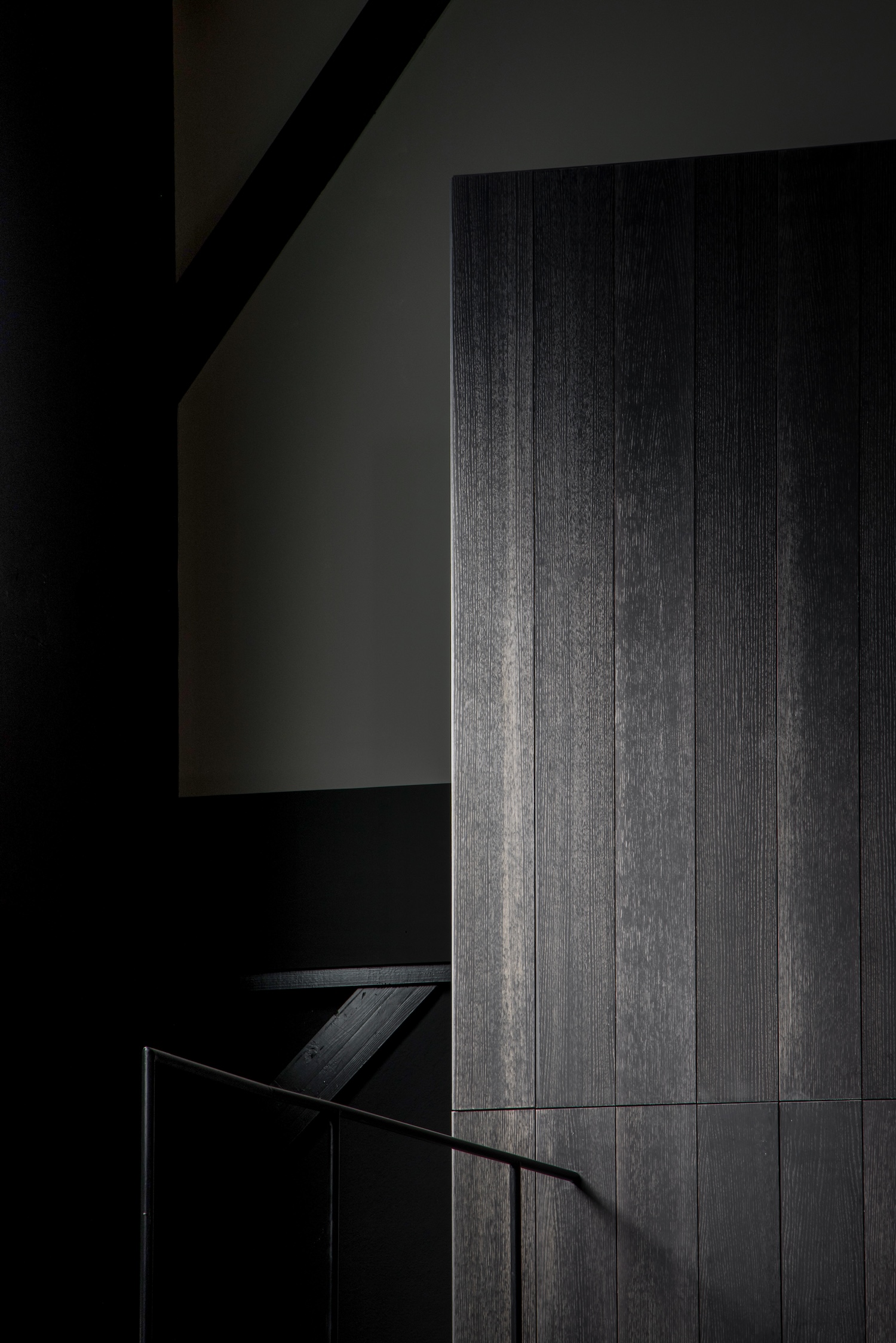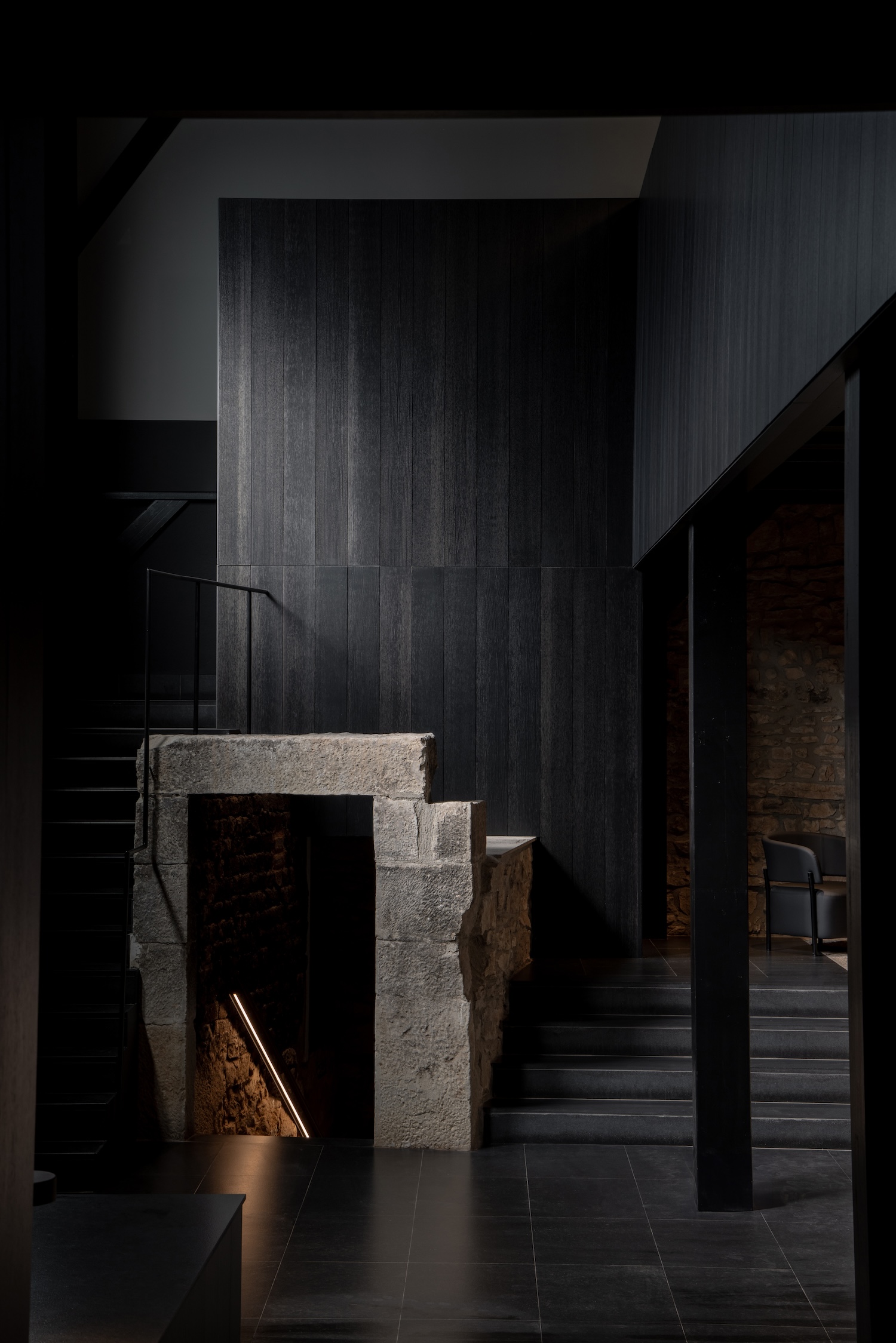 Tritium Winery의 설계에서 가장 두드러진 특징 중 하나는 재료 선택입니다. 탄화된 목재와 검은 강철이 주로 사용되었으며, 이는 공간의 내구성을 높이면서도 미니멀리즘적 디자인을 구현하는 데 중요한 역할을 했습니다. 특히, 이 재료들은 와이너리의 전통적 요소인 돌과 조화를 이루며, 과거와 현대를 연결하는 중요한 매개체로 작용합니다.