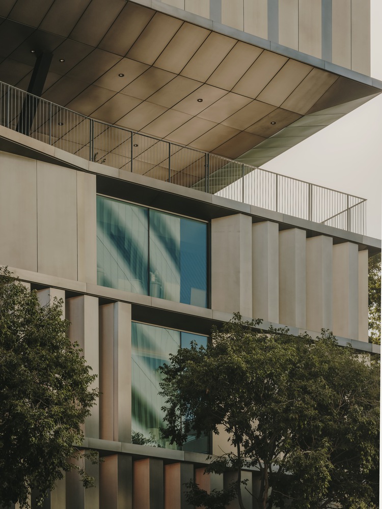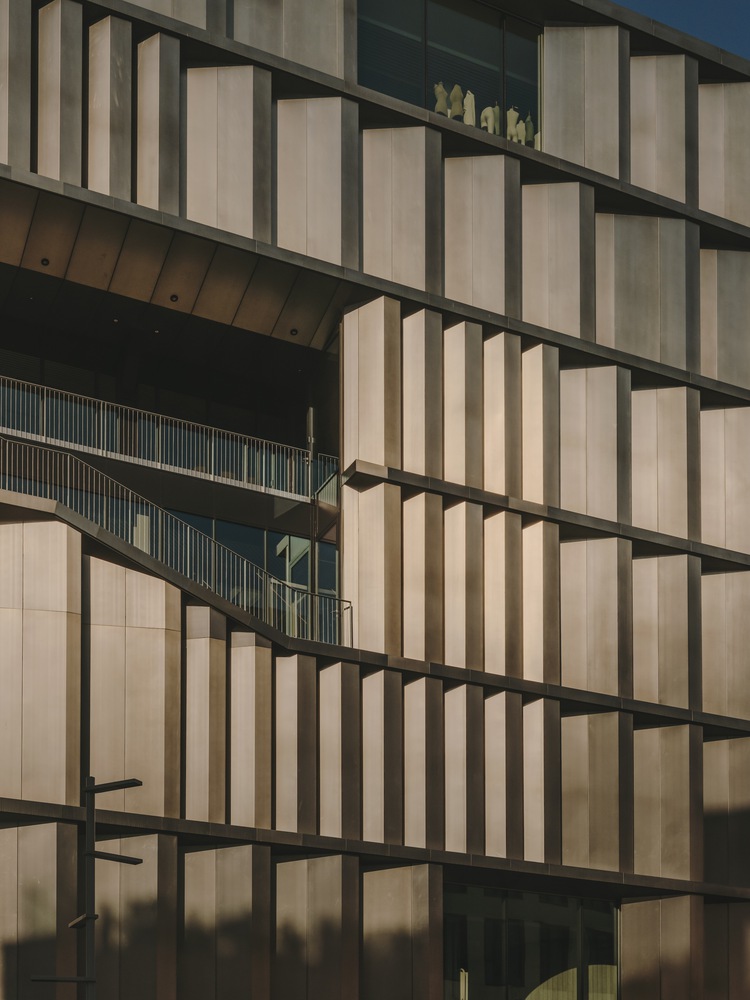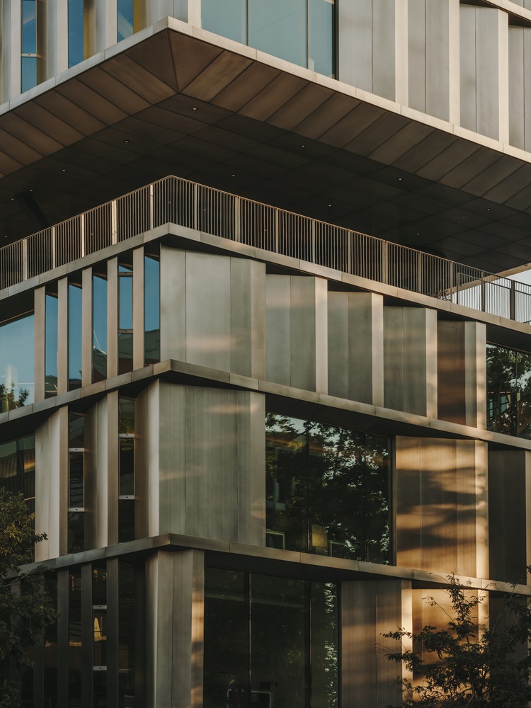 The façade of the building responds to various orientations through a unified strategy. It blocks direct sunlight to prevent glare while maximizing the entry of indirect light. Externally, the facade is clad in aluminum and finished with a transparent powder coating. This preserves the textural qualities and light reflection of the metal, allowing the aluminum to interact with its surroundings and the changing sunlight throughout the day. Internally, the walls are paneled in white, enhancing the natural light within.