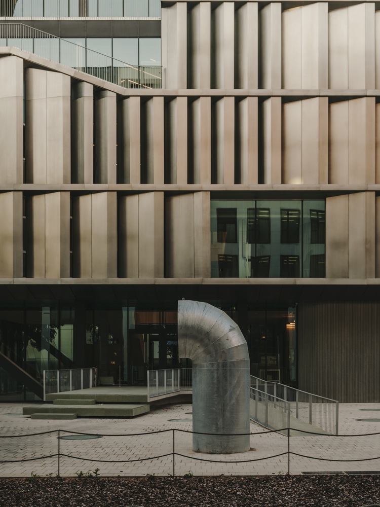 건물 외관에는 금속과 유리 소재가 사용되어, 현대적인 미감과 세련된 분위기를 전달합니다. 금속 패널의 질감과 유리의 투명성은 자연광을 반사하고 흡수하면서, 시간대와 날씨에 따라 다채로운 표정을 드러냅니다. 이러한 소재 선택은 단순한 장식적 요소를 넘어, 학생들에게 끊임없이 변화하는 환경을 제공하며 창의적 영감을 불러일으킵니다.