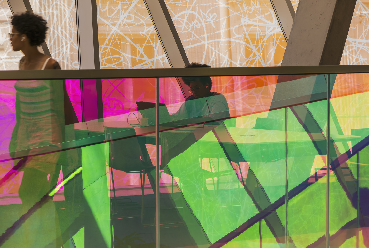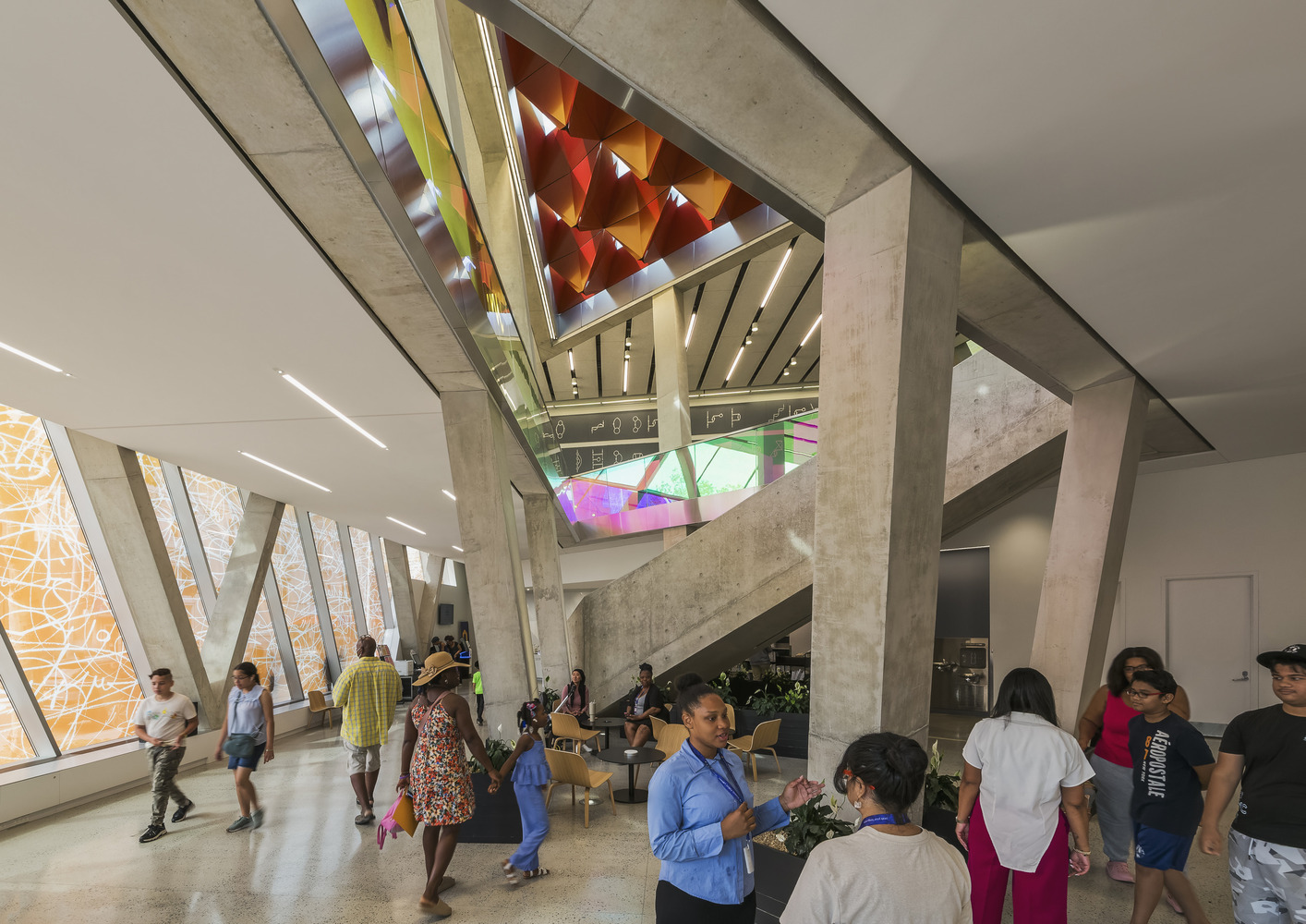 소재 및 질감: 외부의 컬러 글라스와 내부의 노출 콘크리트 및 투명 유리는 현대적인 질감을 강조하며, 도시 환경과 조화를 이루도록 설계되었습니다. 이러한 재료들은 건축물이 가진 사회적 역할과 미적 가치를 동시에 충족시키며, 방문자에게 따뜻하고 세련된 인상을 줍니다.