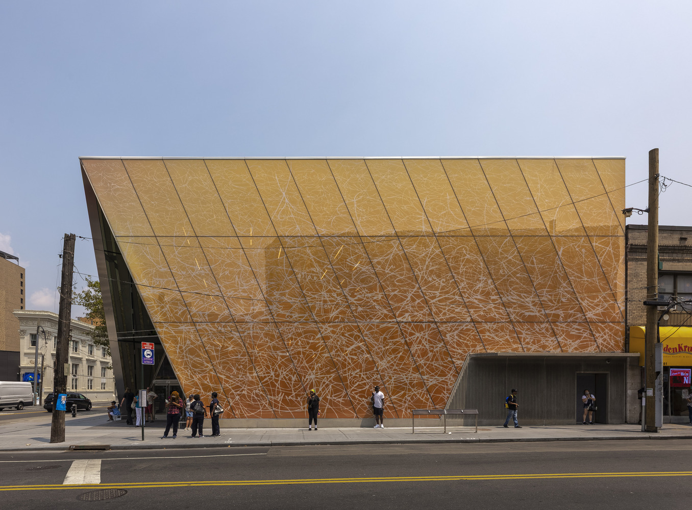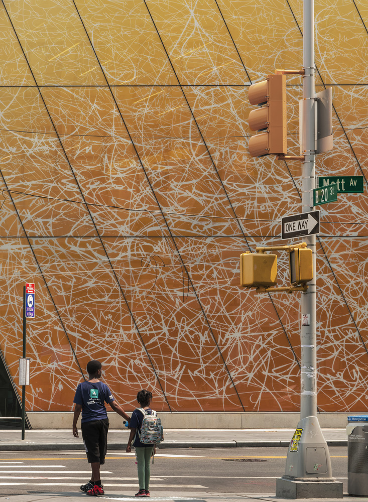 The Far Rockaway Library in Queens is designed as a collaboration between Snøhetta and Brooklyn based contemporary artist José Parlá to reflect Far Rockaway's diversity and dynamism. Serving as a community gathering place and resource for knowledge, the library symbolizes resilience. In 2012, Hurricane Sandy nearly destroyed the surrounding Rockaway community. In the aftermath of the storm, the existing 1968 library building provided disaster relief to residents. It was a lifeline, becoming a meeting point, a food and supply distribution center, and more. The library empowered collective action, and in turn, became a symbol of hope. The design to replace the original library aims to amplify its role in the community even further, serving as a hub for learning and exchange.
