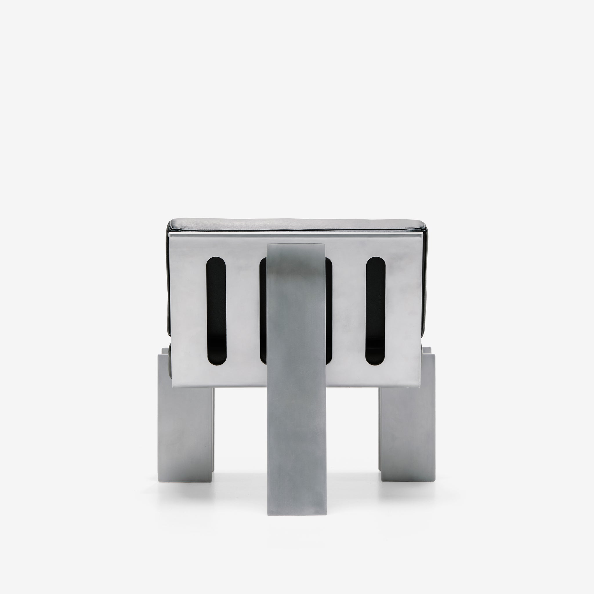 빛과 색채: 이 의자의 알루미늄 표면은 빛을 반사하여 윤곽을 선명하게 드러내며, 조명 각도에 따라 색조가 미묘하게 변해 깊이감을 제공합니다. 빛의 움직임에 따라 변하는 이 질감은 사용자가 경험하는 공간의 분위기를 유동적으로 변화시킵니다.