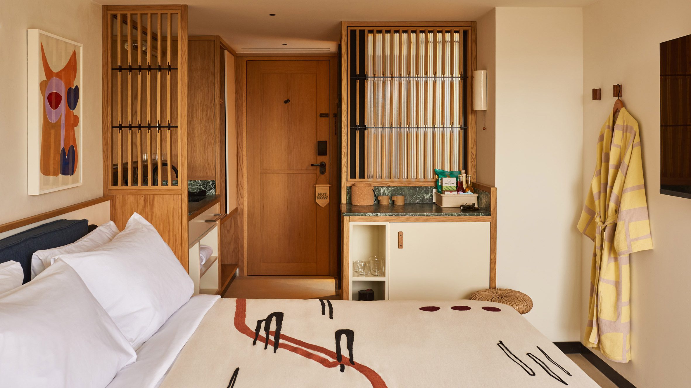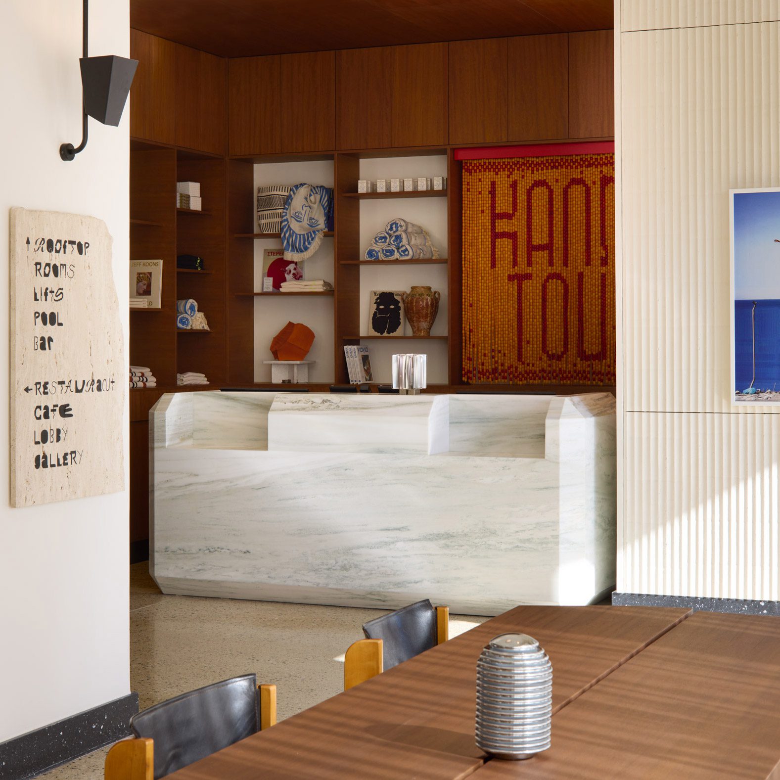The studio worked with local brand Back to the Future to find the 1960s and 70s furniture and accessories that decorate the main areas and the guest rooms.