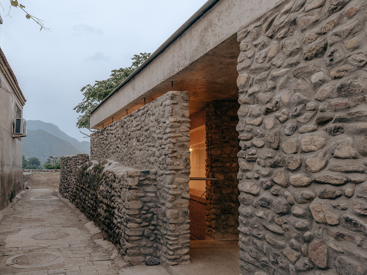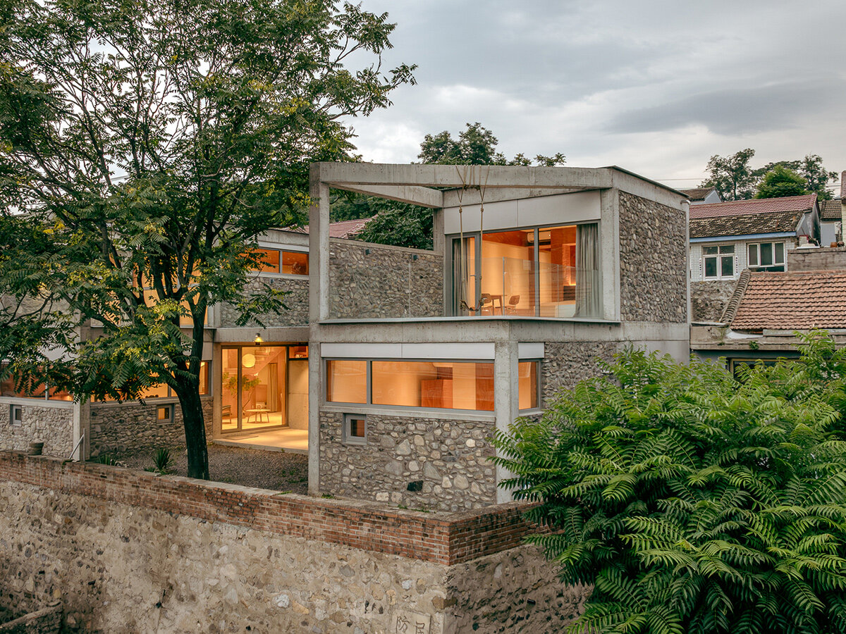 Located in a quiet village in Beijing, this House of Bluff by architecture studio Chaoffice stands as an example of transformation and renewal. The existing house had been abandoned for years, becoming a derelict structure overtaken by wild vegetation, collapsed buildings, and debris. When the architects first visited, they found the property inhabited by stray animals, birds, and even palm-sized spiders. However, among the decay, two toon trees had flourished on the site, sheltering the neglected land.