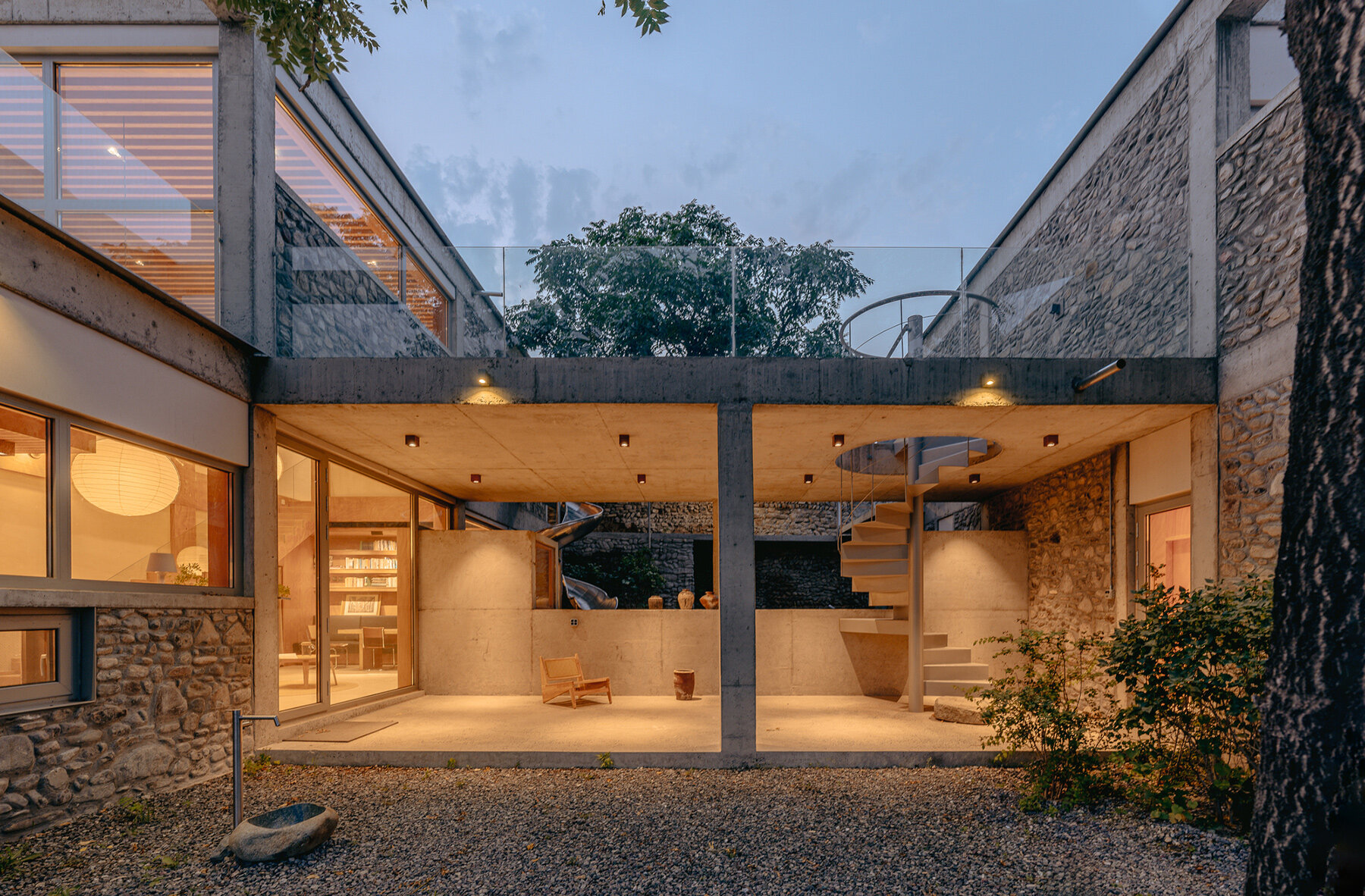 The architects drew inspiration for the design from Lucas Cranach the Elder’s 1573 painting The Fountain of Youth. In the painting, a finely crafted sunken basin, symbolizing youth, contrasts starkly with a surrounding barren landscape. This symbolic contrast is echoed in the design of House of Bluff. With a limited budget, the architects employed simple geometric concrete forms to breathe new life into the wasteland, turning it into a space of ‘rejuvenation,’ much like the fountain in Cranach’s painting.