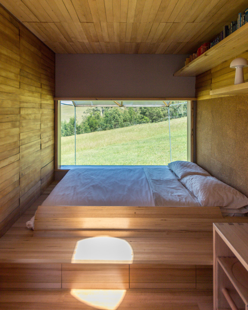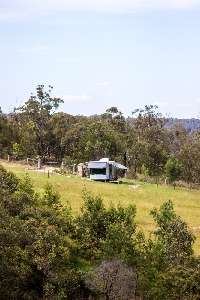At the beginning of the Great Alpine Road in rolling foothills and eucalyptus forest, the client wanted a small temporary dwelling to highlight the natural features of the landscape and to eventually leave the site free without any residual impact of settlement. The forested landscape home to a thriving ecosystem, also has an uncanny collection of lone chimneys, their dwellings have disappeared without a trace by way of wildfire or economic shifts in time, this landscape understands the concept of impermanence.