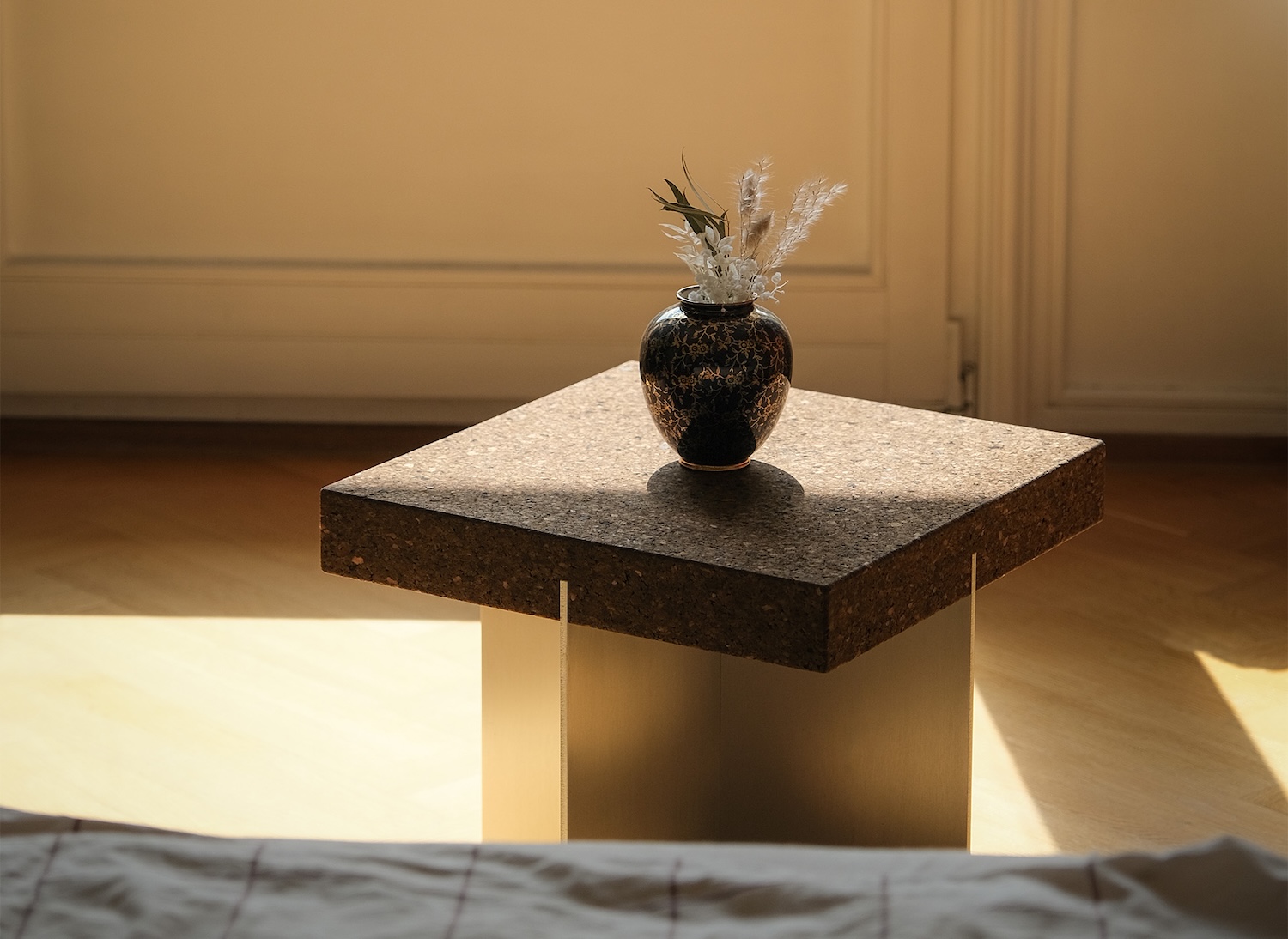 Cork X는 사용자와 상호작용하며 감각적 경험을 제공합니다. 코르크의 부드럽고 따뜻한 촉감과 알루미늄의 차가운 질감은 촉각적 만족을 선사하며, 공간 안에서 오감을 자극하는 특별한 경험을 제공합니다. 이 작품은 단순한 가구를 넘어선, 공간과의 감각적 대화를 가능케 합니다.
