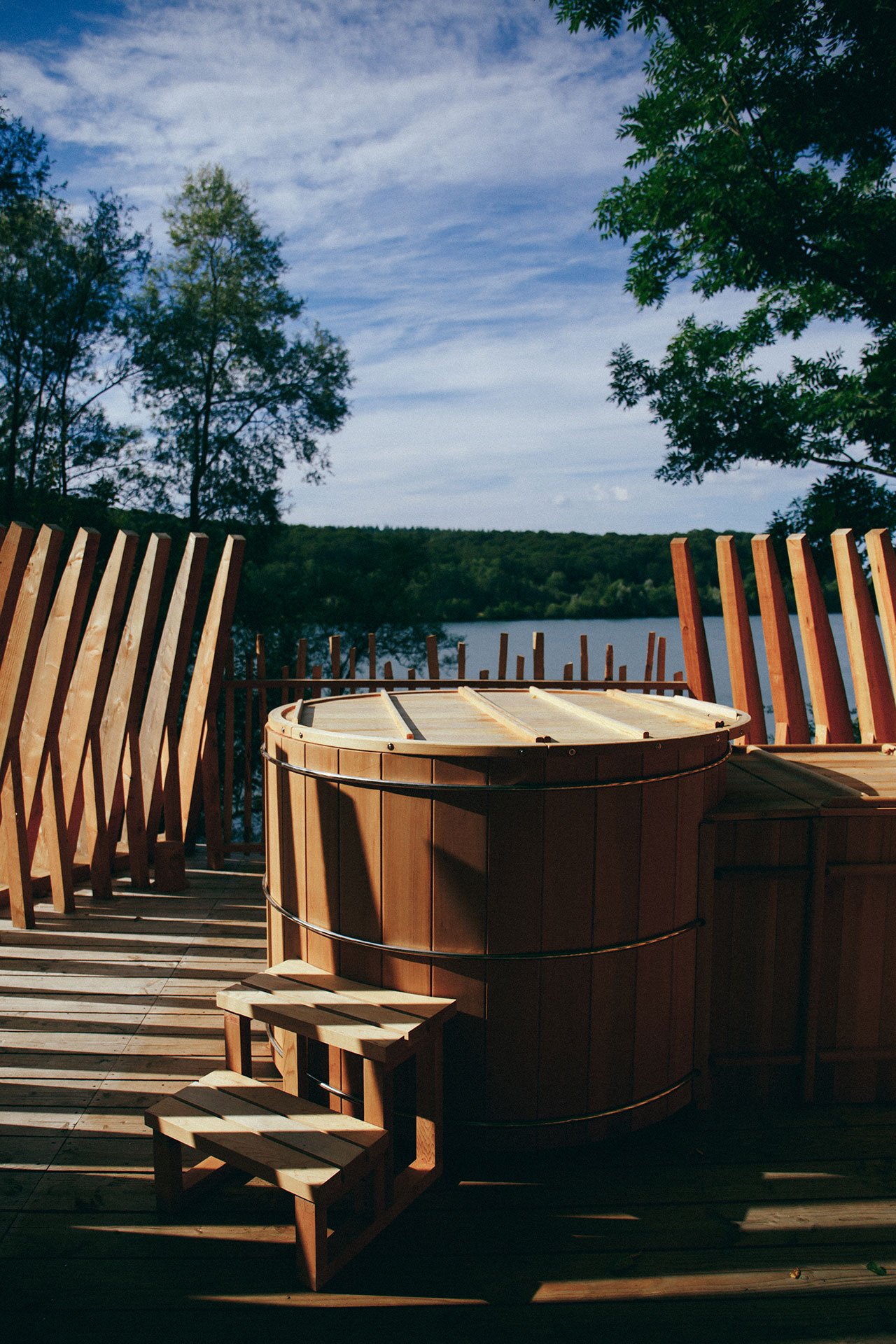 3층: 나무 꼭대기에 위치한 노르딕 욕조는 따뜻한 물속에서 숲과 호수를 감상할 수 있는 특별한 공간입니다.