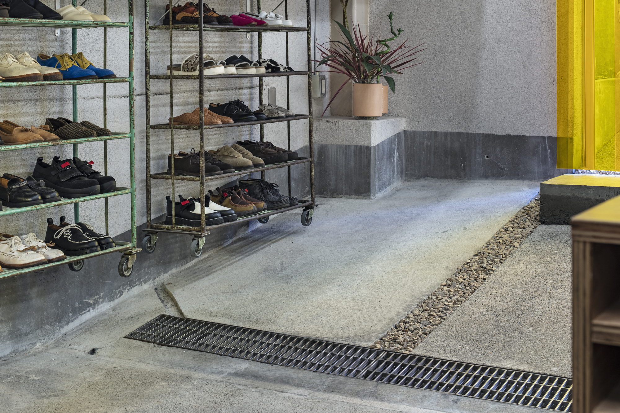 수리 워크숍은 신발 보존을 위한 방음과 습도 조절 기능을 제공하며, 판매 공간은 경사 바닥에도 불구하고 효율적인 상품 배치를 가능하게 합니다. 이러한 설계는 공간의 실질적 사용성과 고객 경험을 극대화합니다.