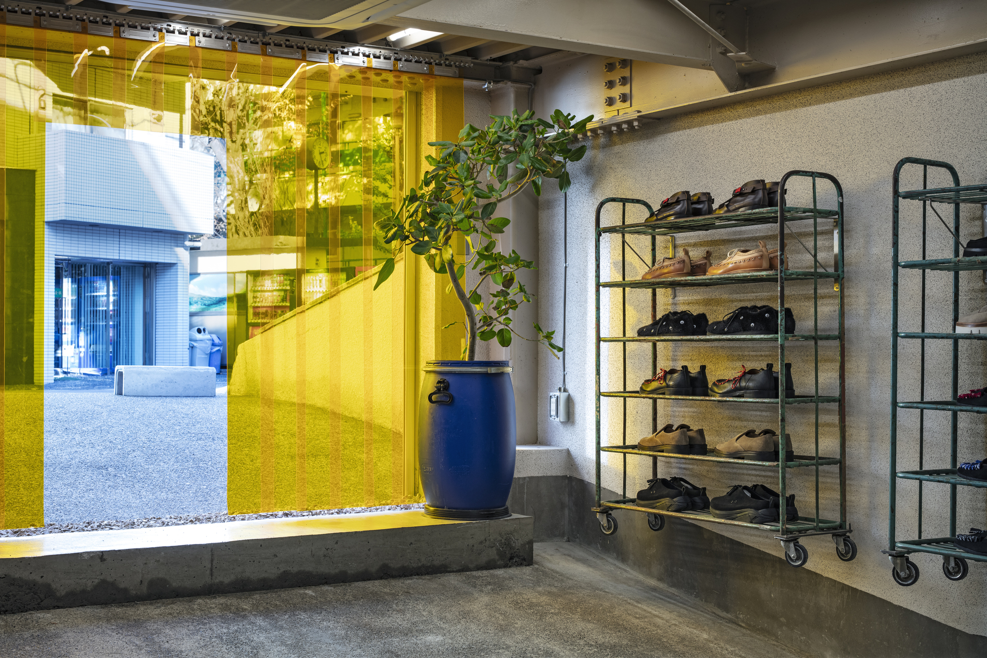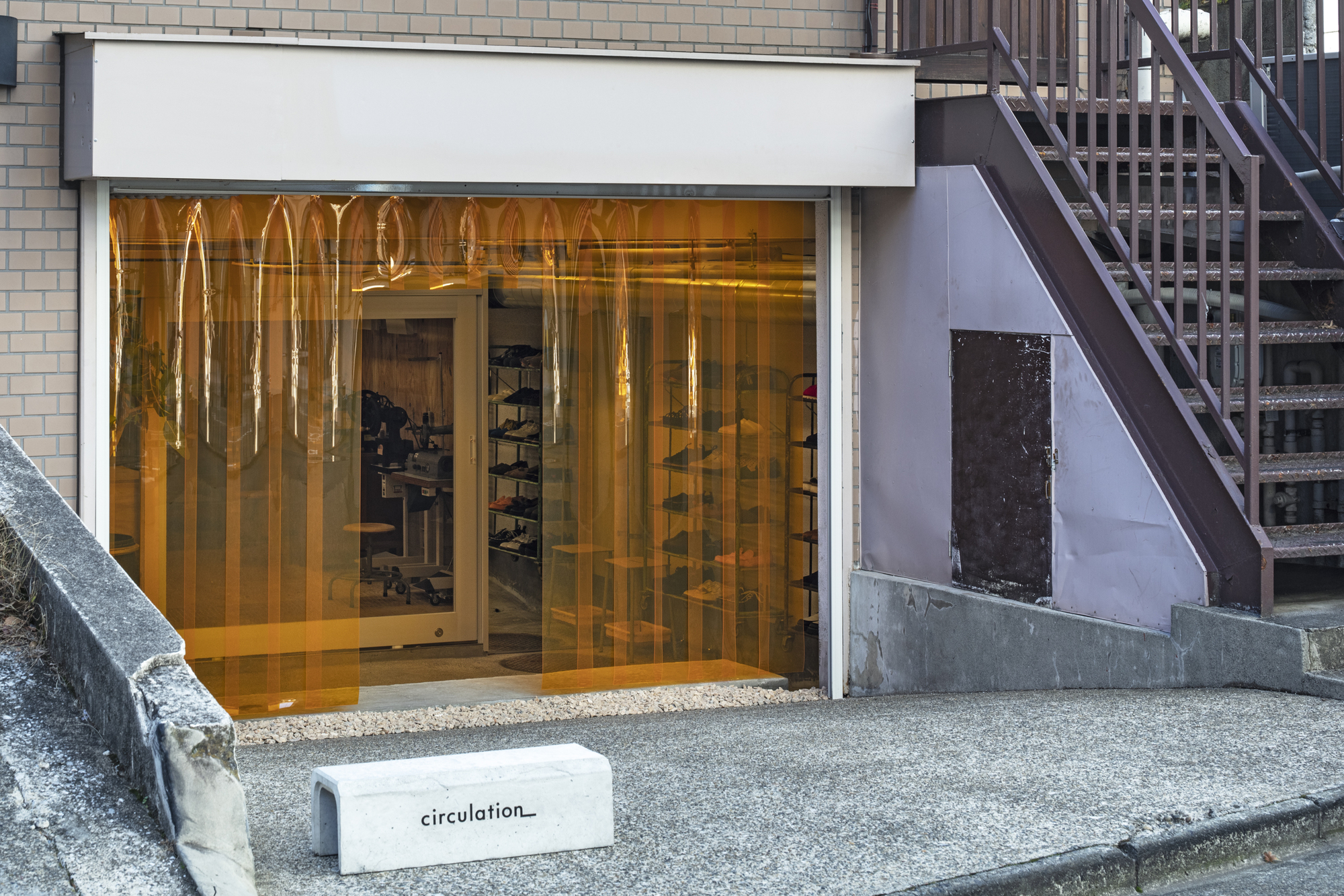 There is a four-way junction a short walk from Ebisu Station, where you will find an art gallery, CAGE GALLERY, and the Hender Scheme flagship store, sukima Ebisu, both run by laicoS, across the road from each other. laicoS seeks out interesting properties and creates galleries and shops to match the context. This project involved renovating the semi-basement space of a building on one corner of the four-way junction into a place called circulation for repairing and reselling products.