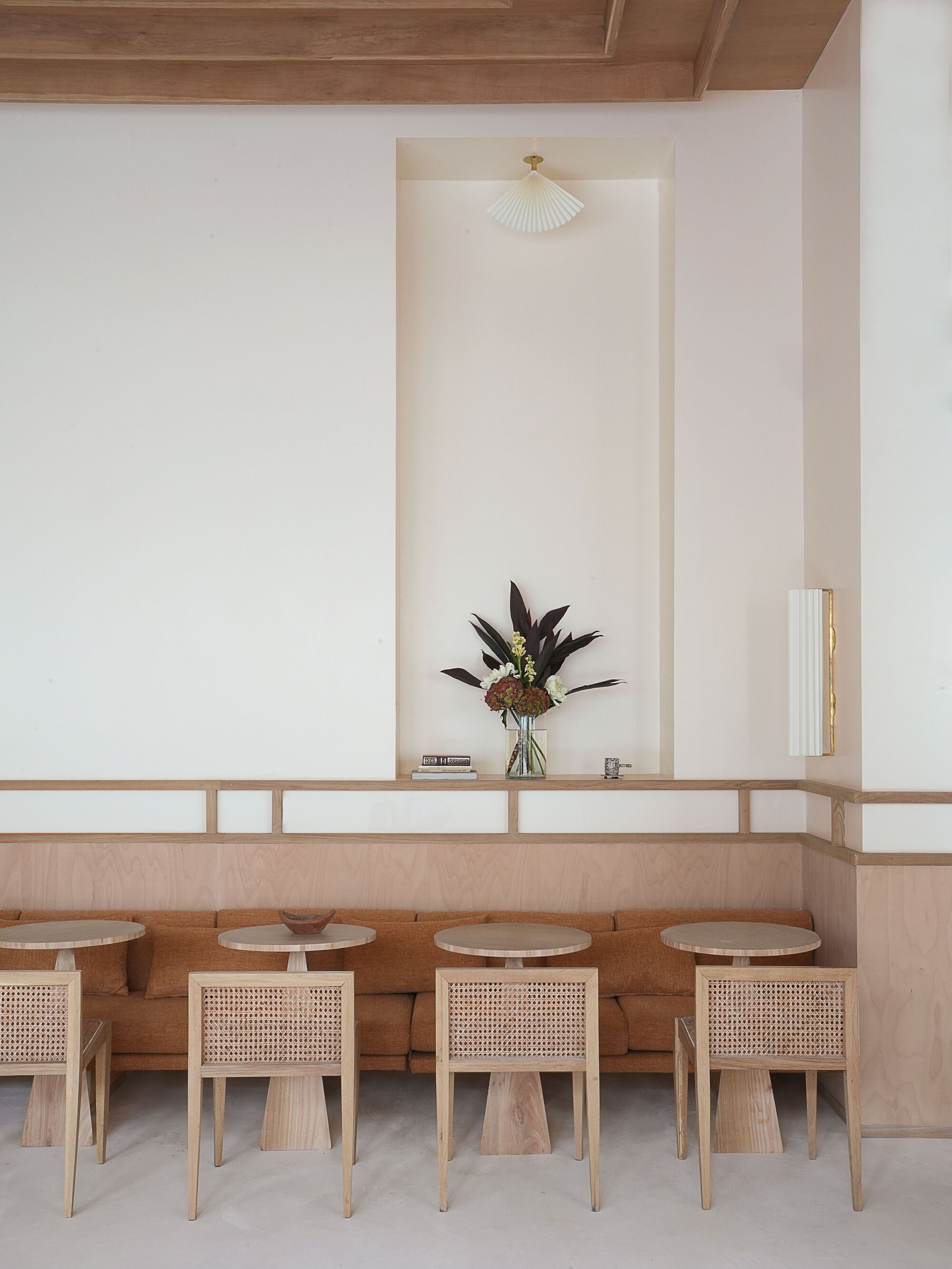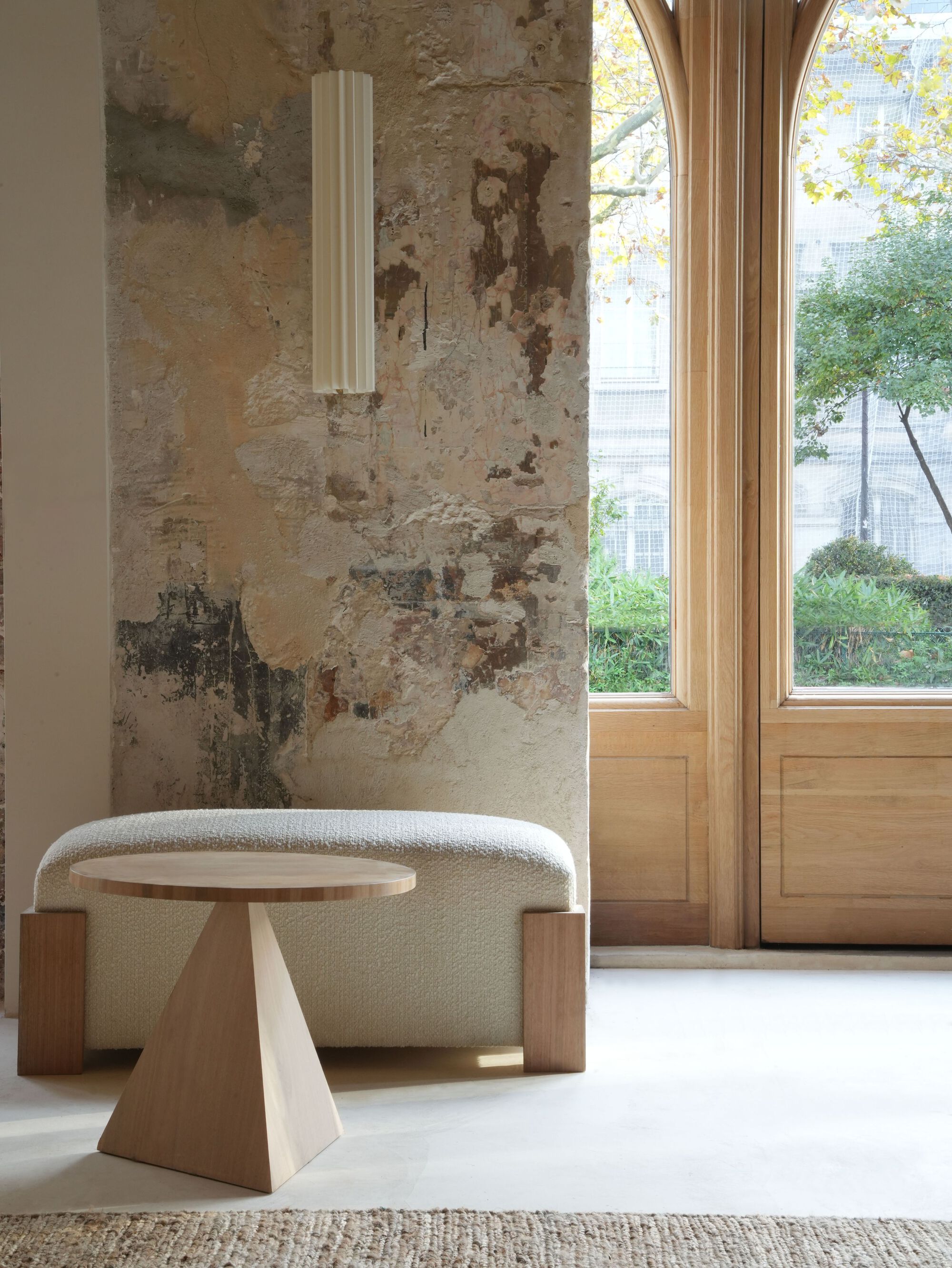 아치형 창문: 시각적 중심을 이루며, 공간의 리듬을 만들어내는 핵심 디자인 요소로 작용합니다.