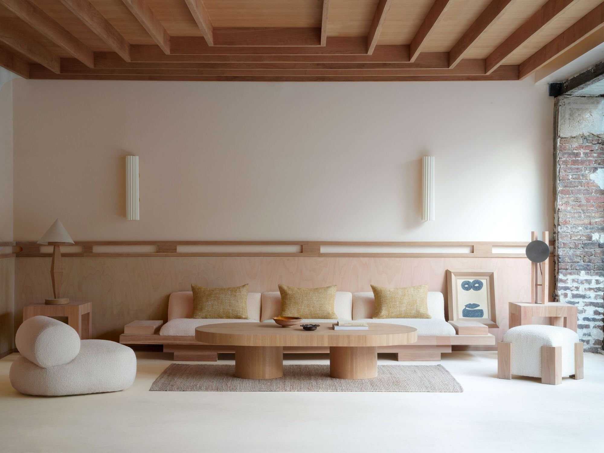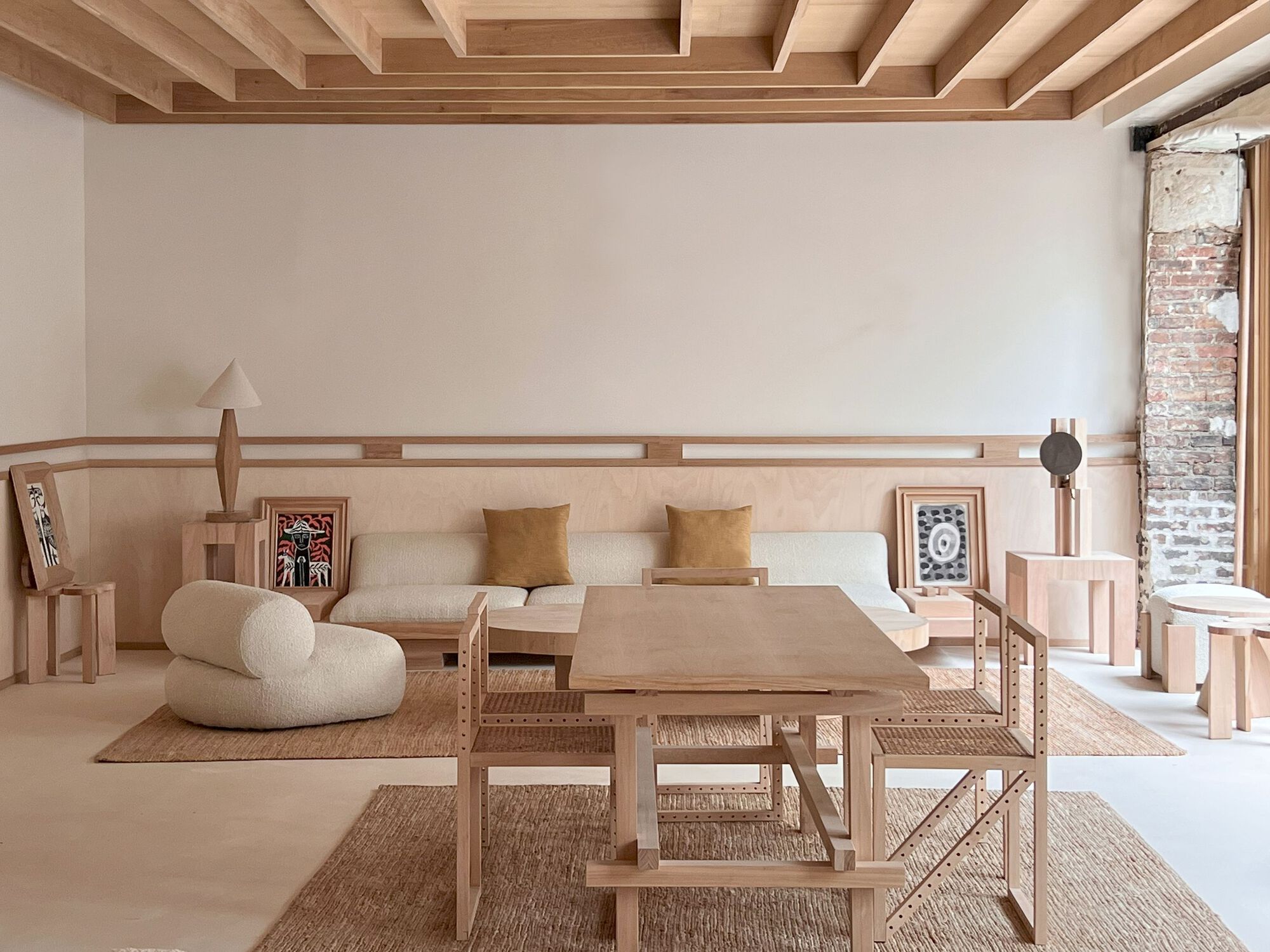 소재의 대조: 목재와 벽돌의 질감이 조화를 이루며, 시각적으로 유기적인 환경을 제공합니다.